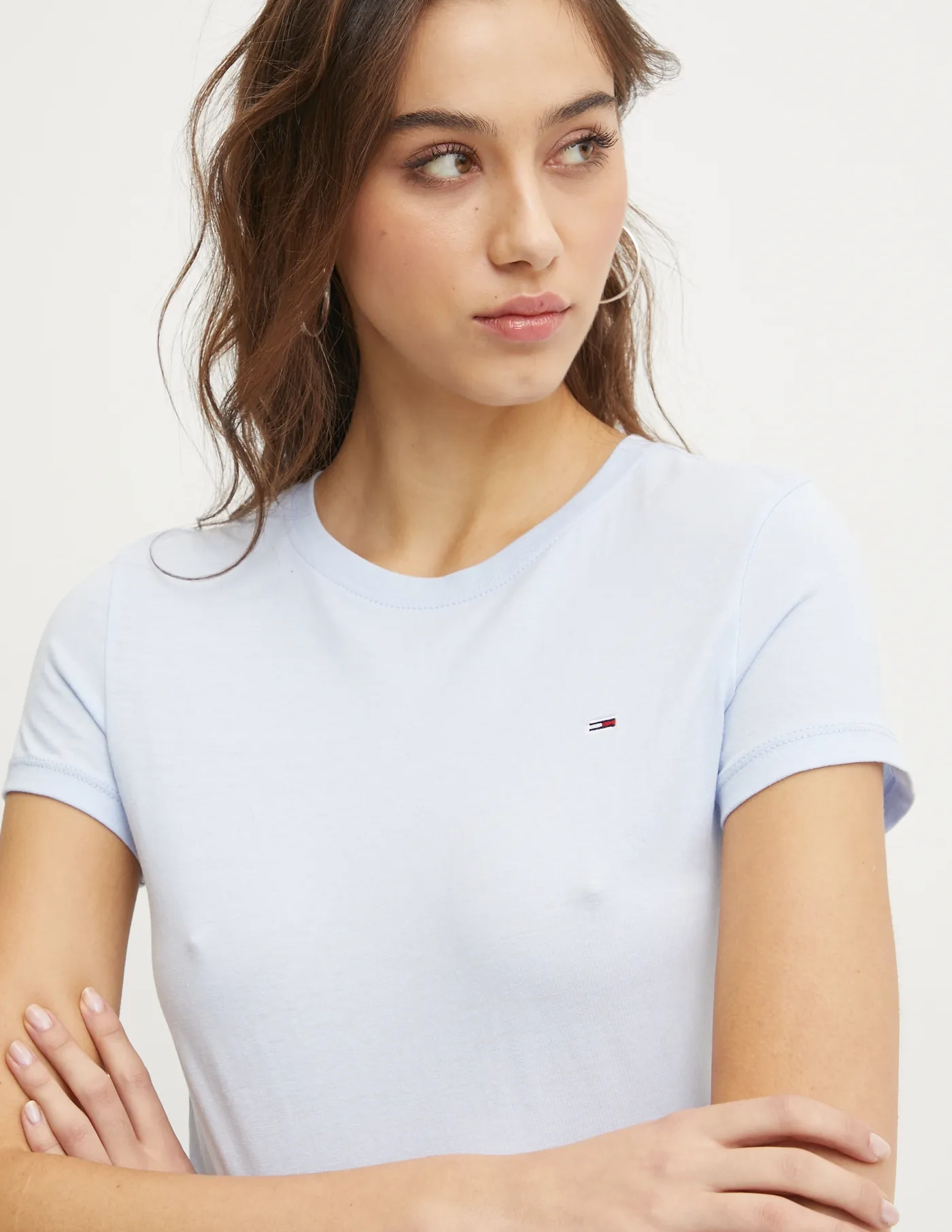 Футболка Tommy Jeans изготовлена ​​из тонкого эластичного трикотажа. Модель изготовлена ​​из дышащего хлопкового материала.