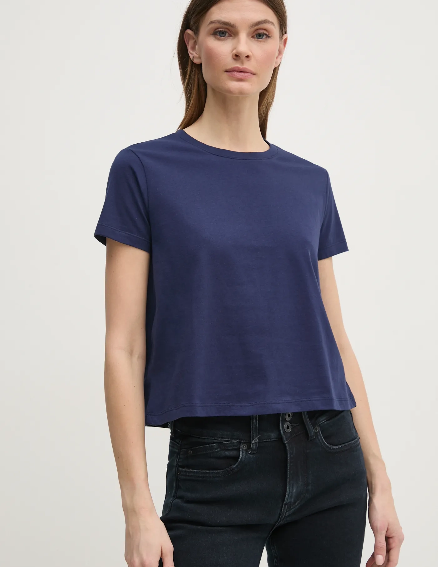 Футболка Sisley из тонкого эластичного трикотажа. Модель изготовлена ​​из очень комфортной хлопковой ткани.