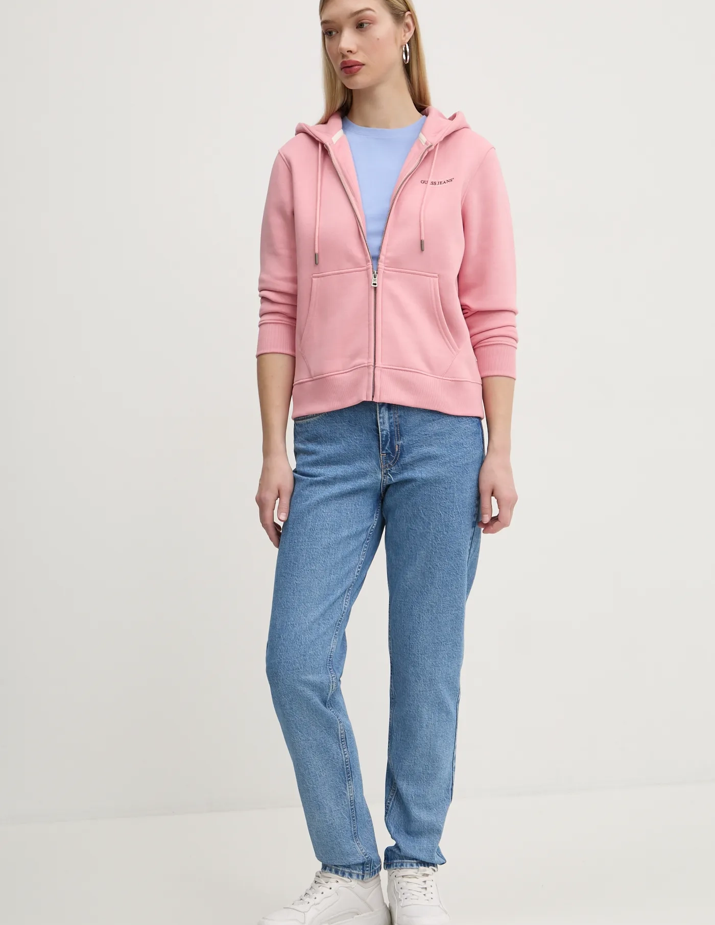 Футболка Guess Jeans из трикотажного полотна. Модель изготовлена ​​из чрезвычайно комфортной ткани с высоким процентом хлопка.
