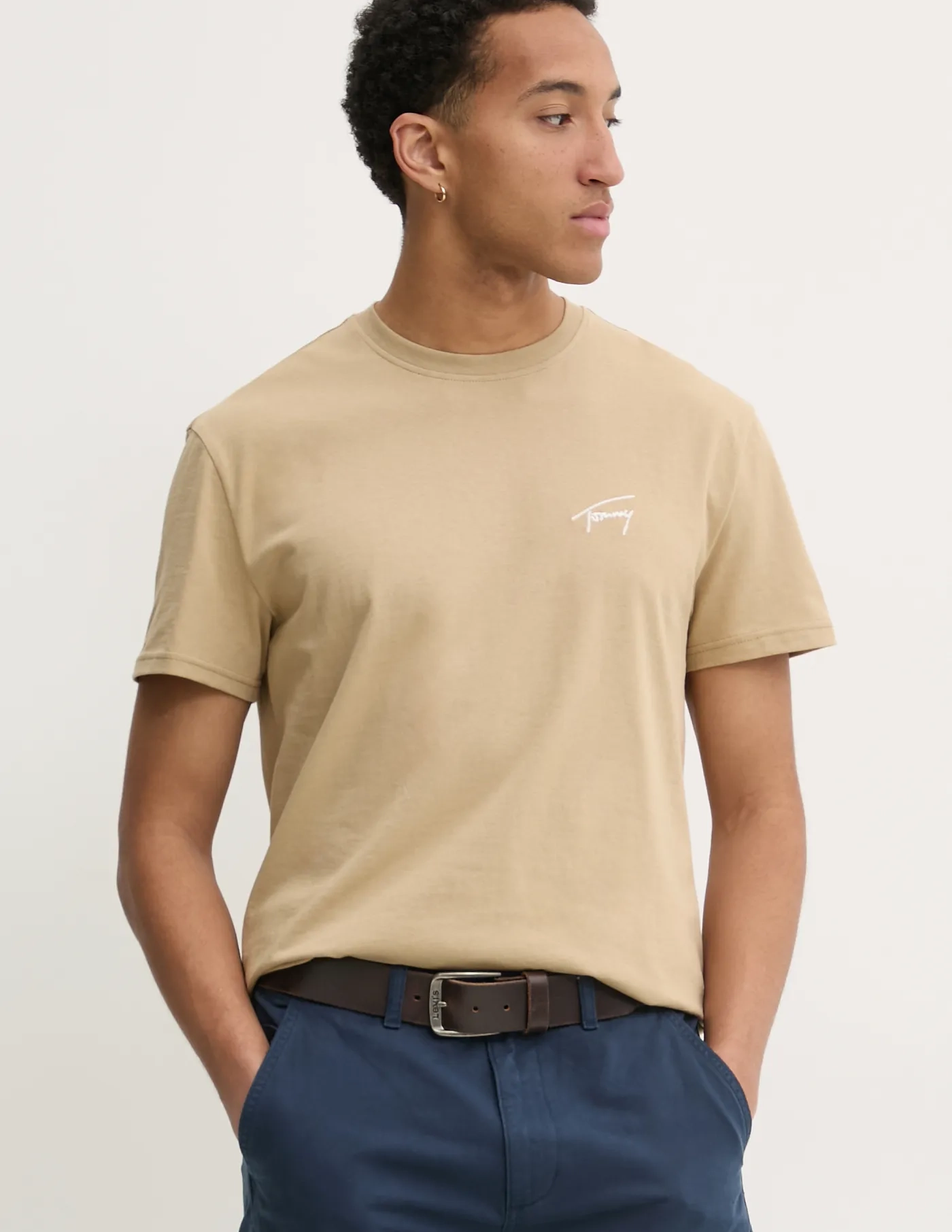 Хлопковая футболка Tommy Jeans, бежевый