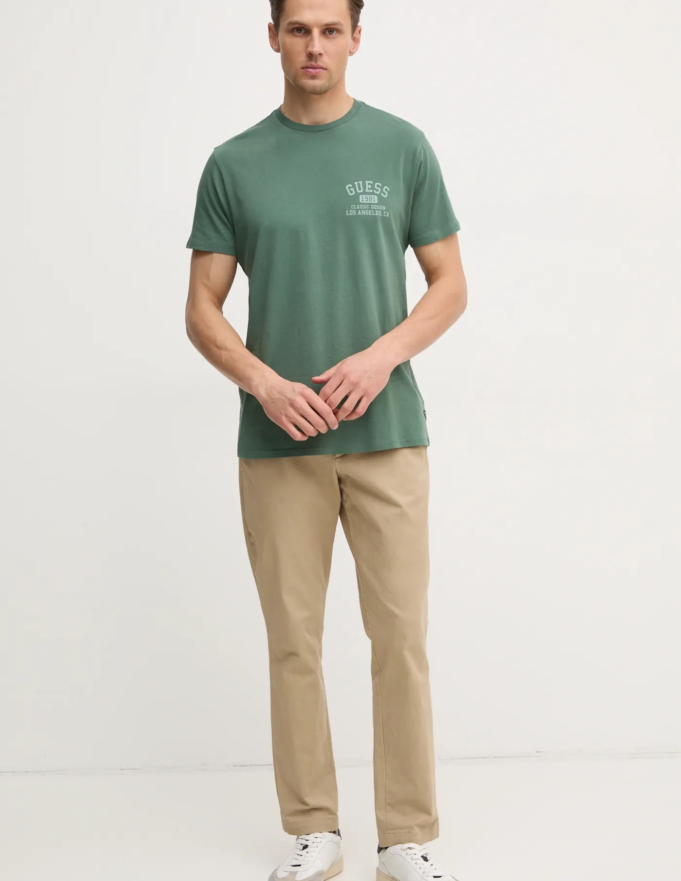 Майка Guess из эластичного трикотажа. Модель изготовлена ​​из очень комфортной хлопковой ткани.