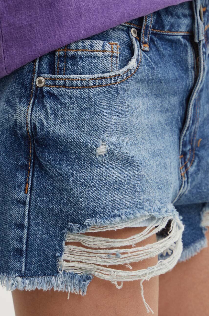 Шорты «Шестое июня» из джинсовой ткани. Модель изготовлена ​​из жесткого материала, сохраняющего форму.