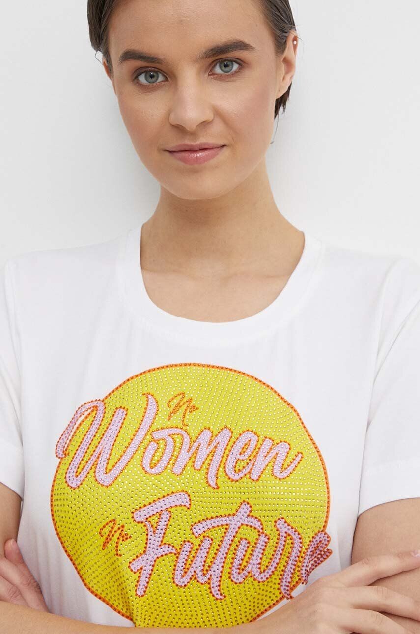 Мос Мош Вязаная футболка с аппликацией. Модель изготовлена ​​из дышащего хлопкового материала.