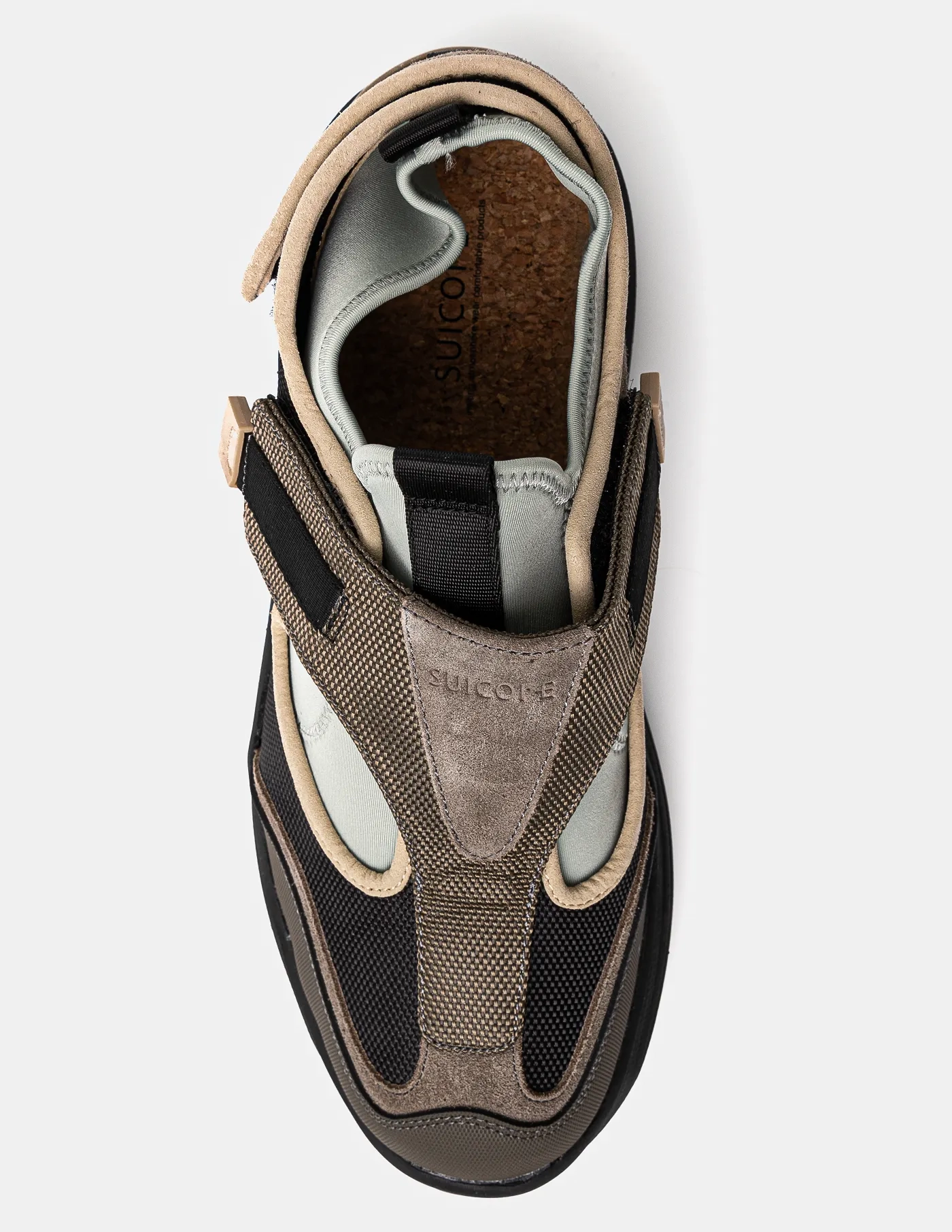 Кроссовки Suicoke из ткани и замши. Модель с рифленой подошвой, обеспечивающей хорошее сцепление с землей.