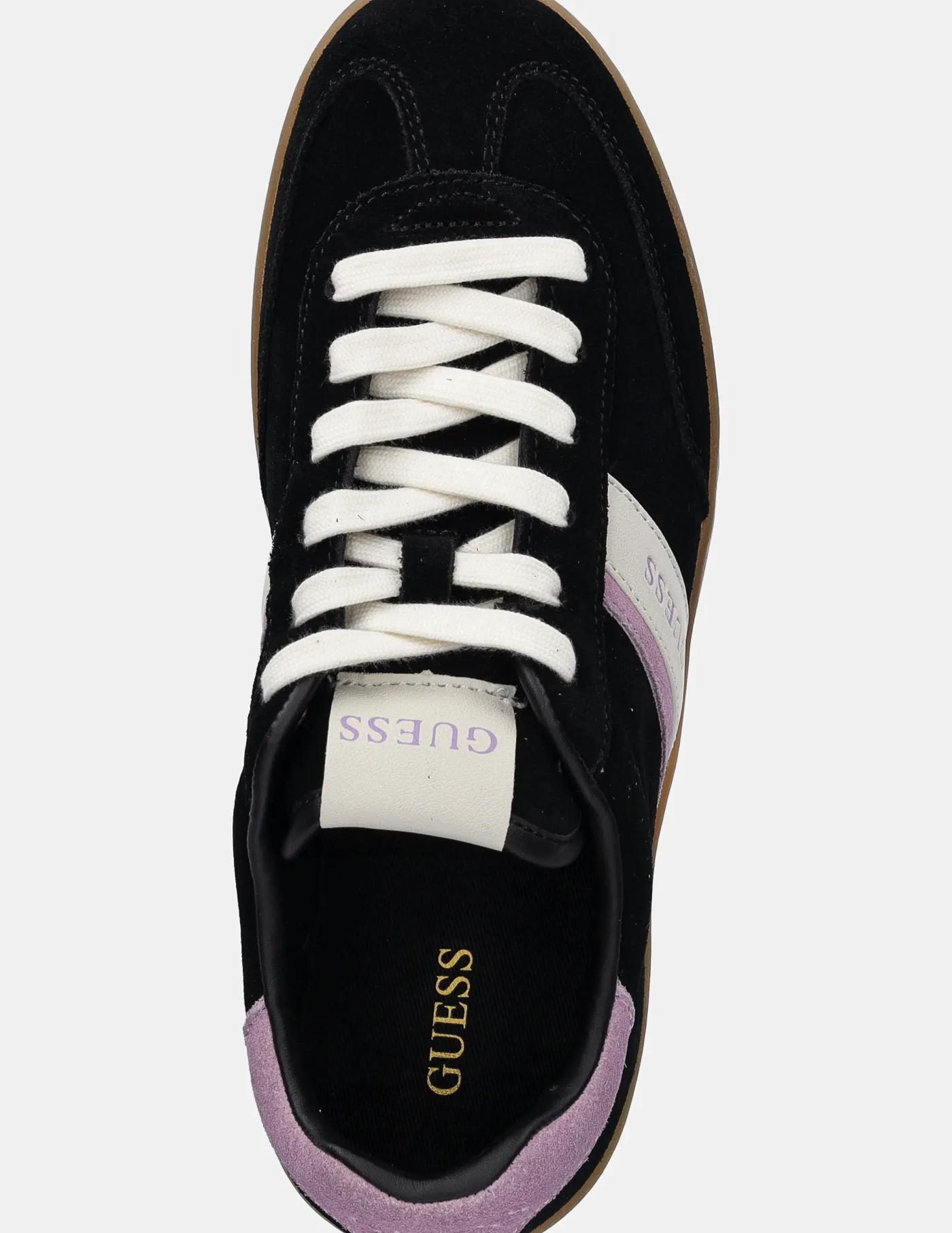 Кроссовки Guess из замши и экокожи. Легкая и удобная модель идеально подходит для повседневного ношения.