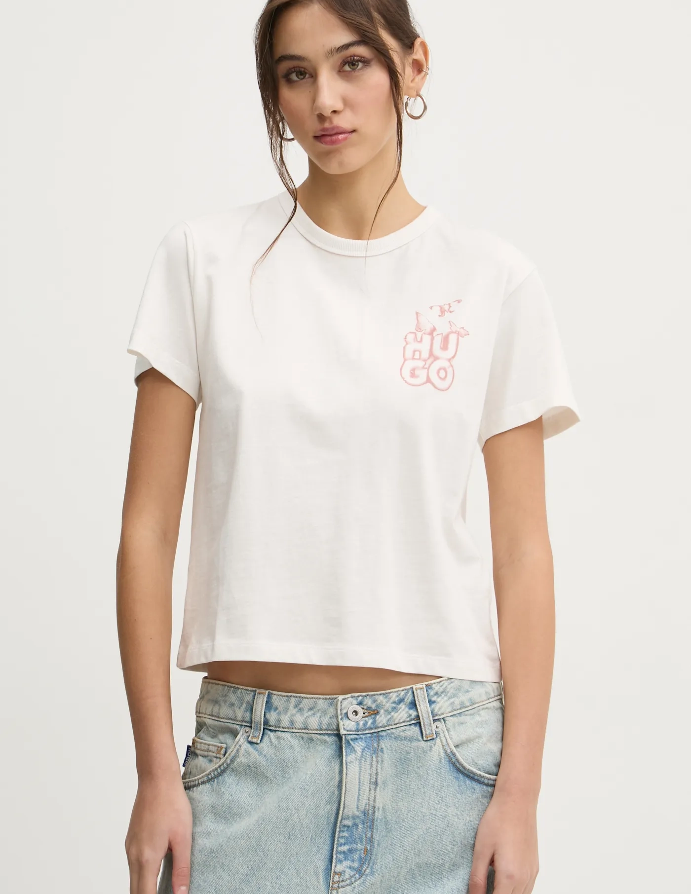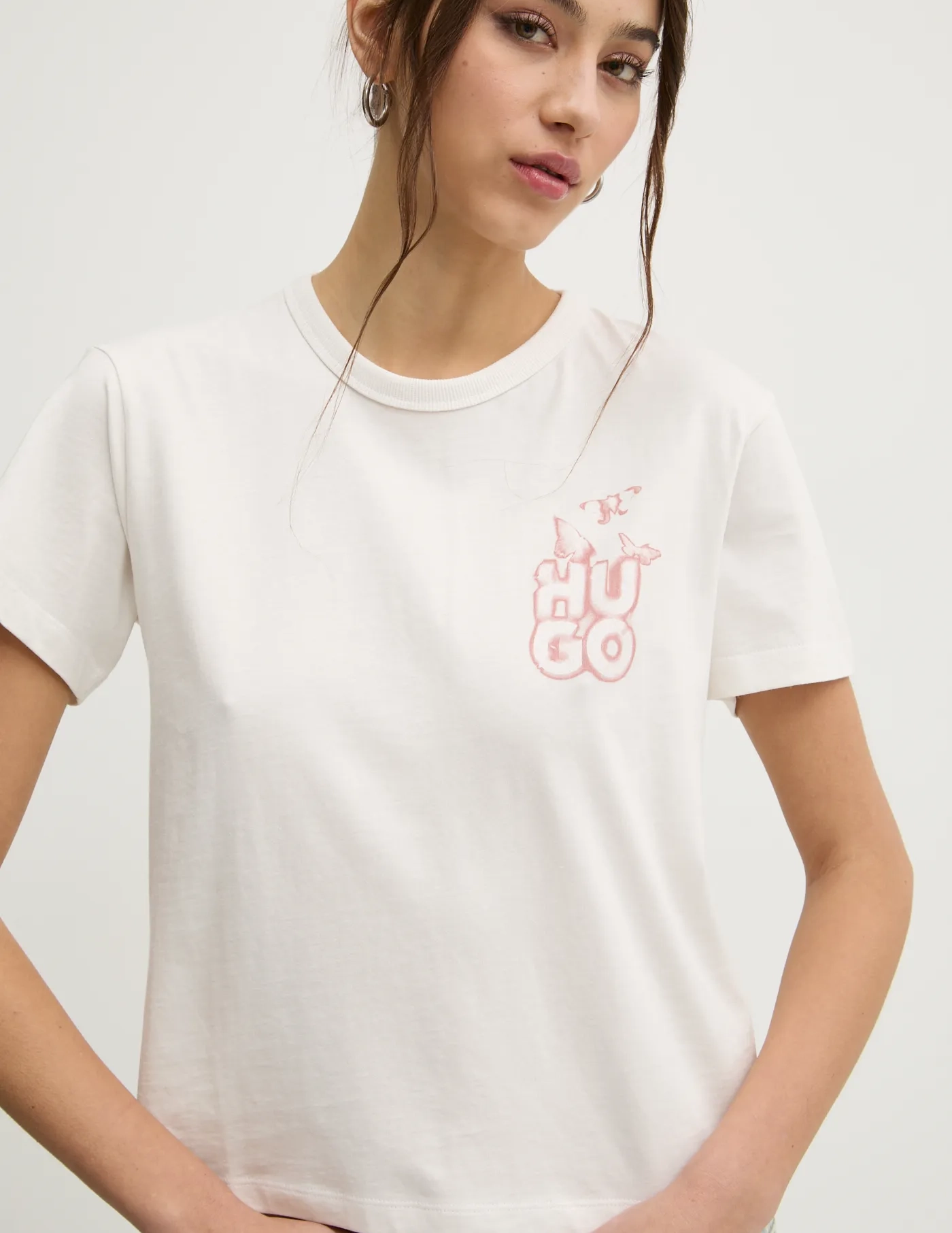 HUGO Трикотажная футболка с принтом. Модель изготовлена ​​из очень комфортной хлопковой ткани.