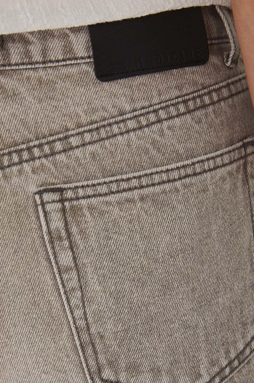 - Модель с стандартной талией, застежкой на пуговицы и молнию.
