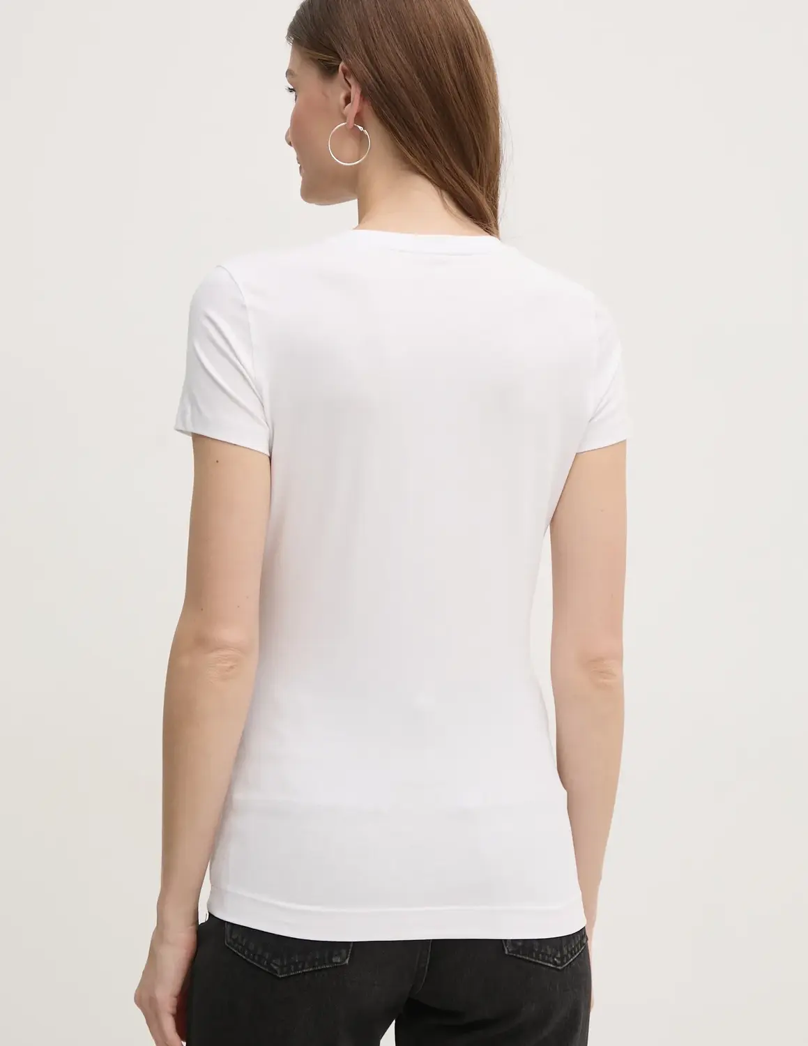 Футболка Guess из трикотажа с аппликацией. Модель изготовлена ​​из чрезвычайно комфортной ткани с высоким процентом хлопка.