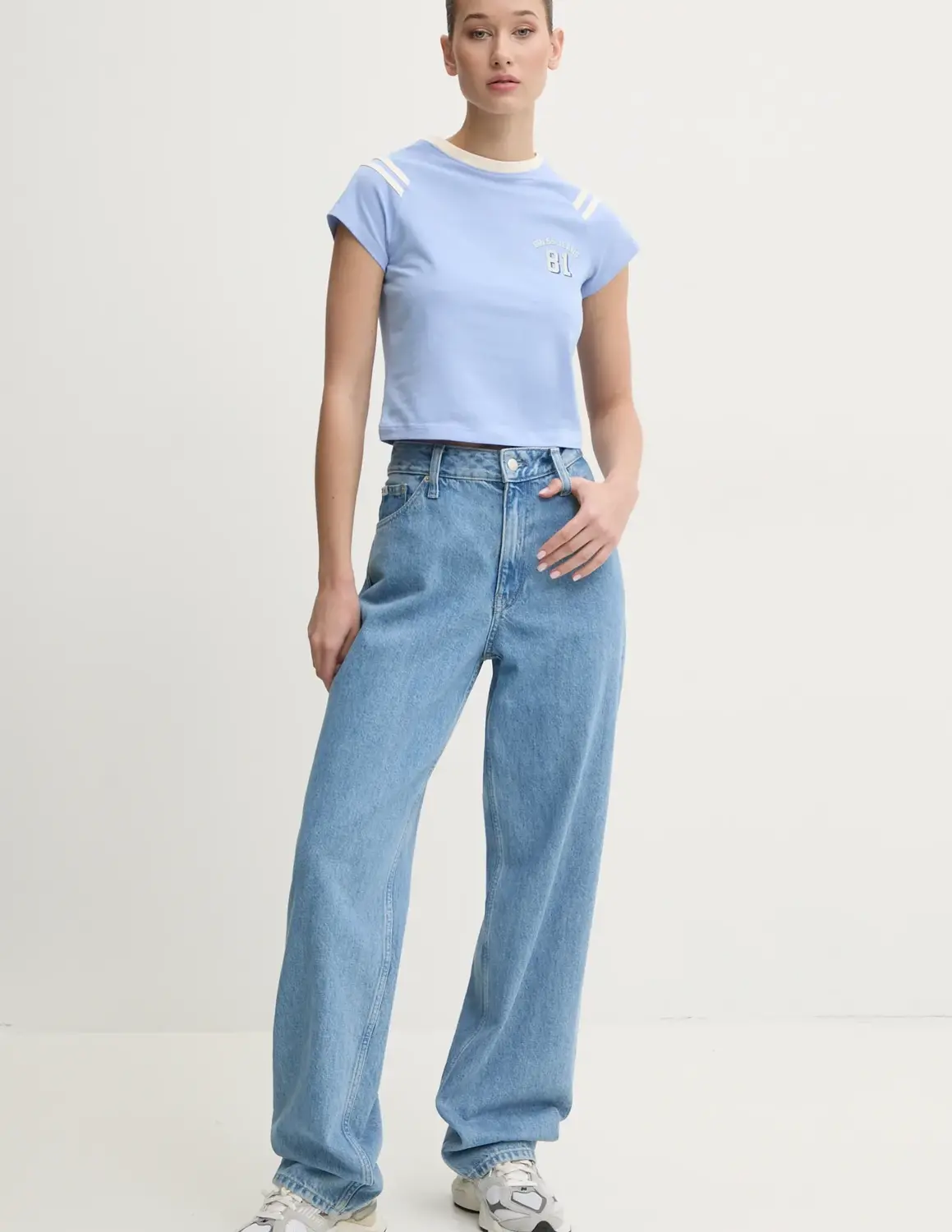 Guess Jeans Трикотажная футболка с аппликацией. Модель изготовлена ​​из чрезвычайно комфортной ткани с высоким процентом хлопка.