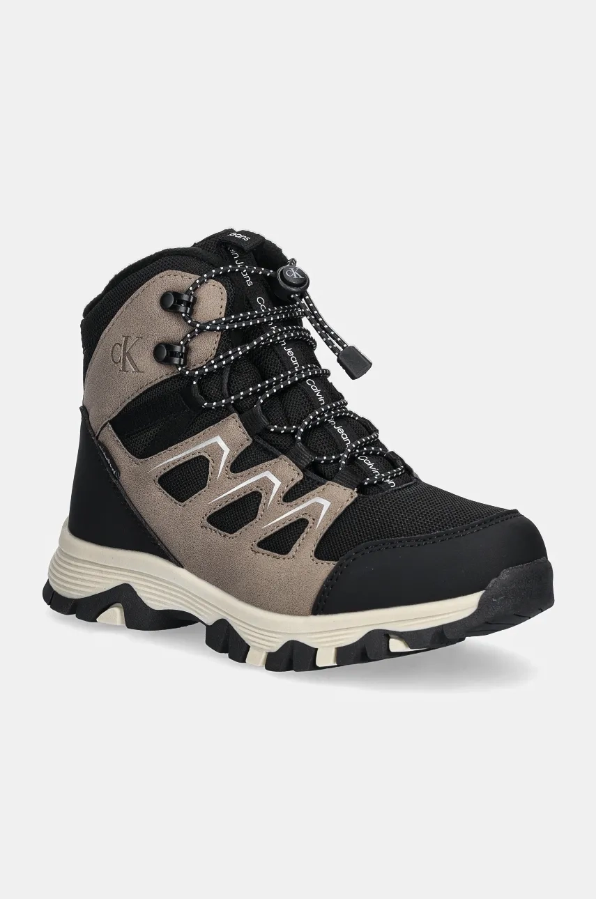 Зимняя детская обувь Calvin Klein Jeans. Изолированная модель из синтетического материала и ткани.