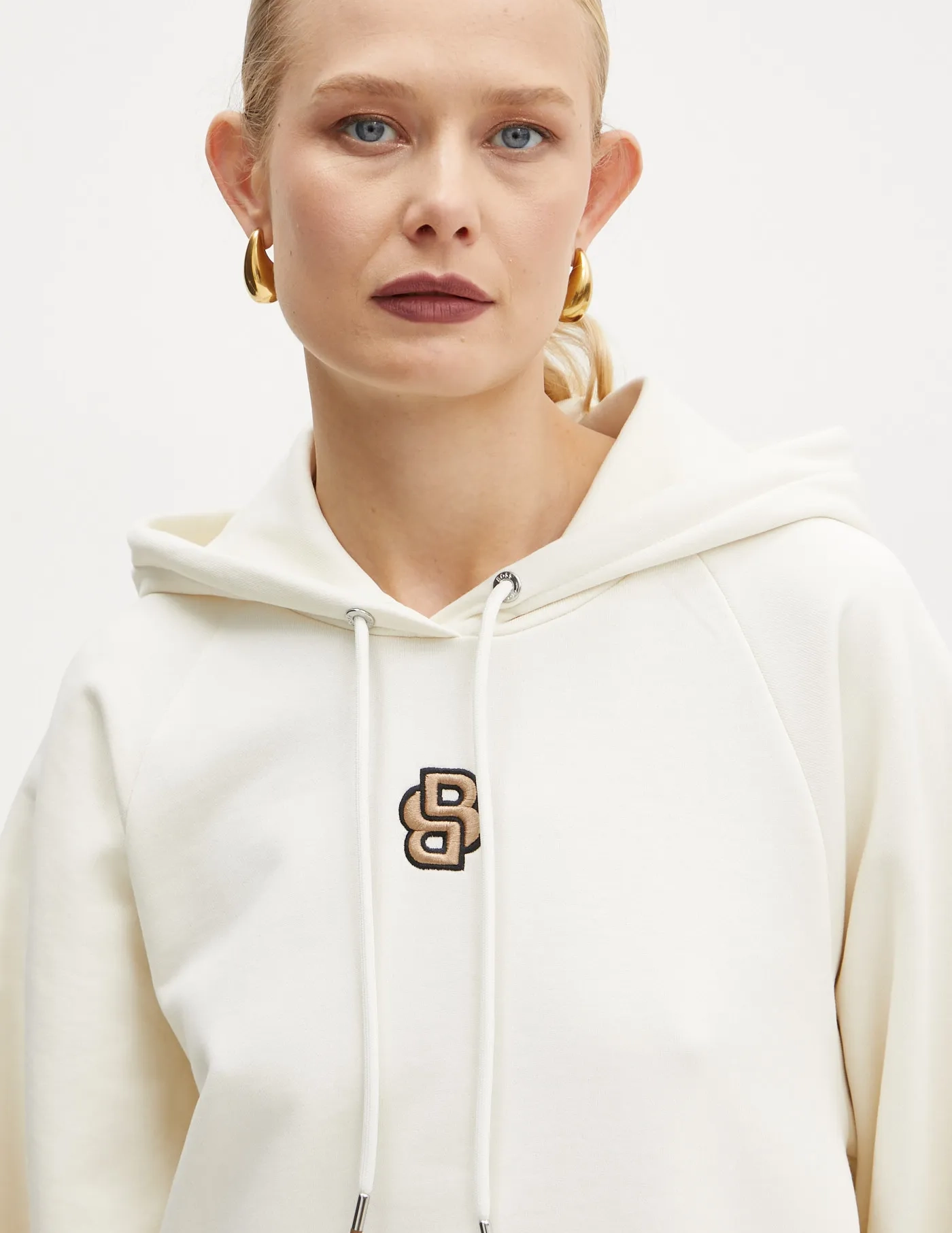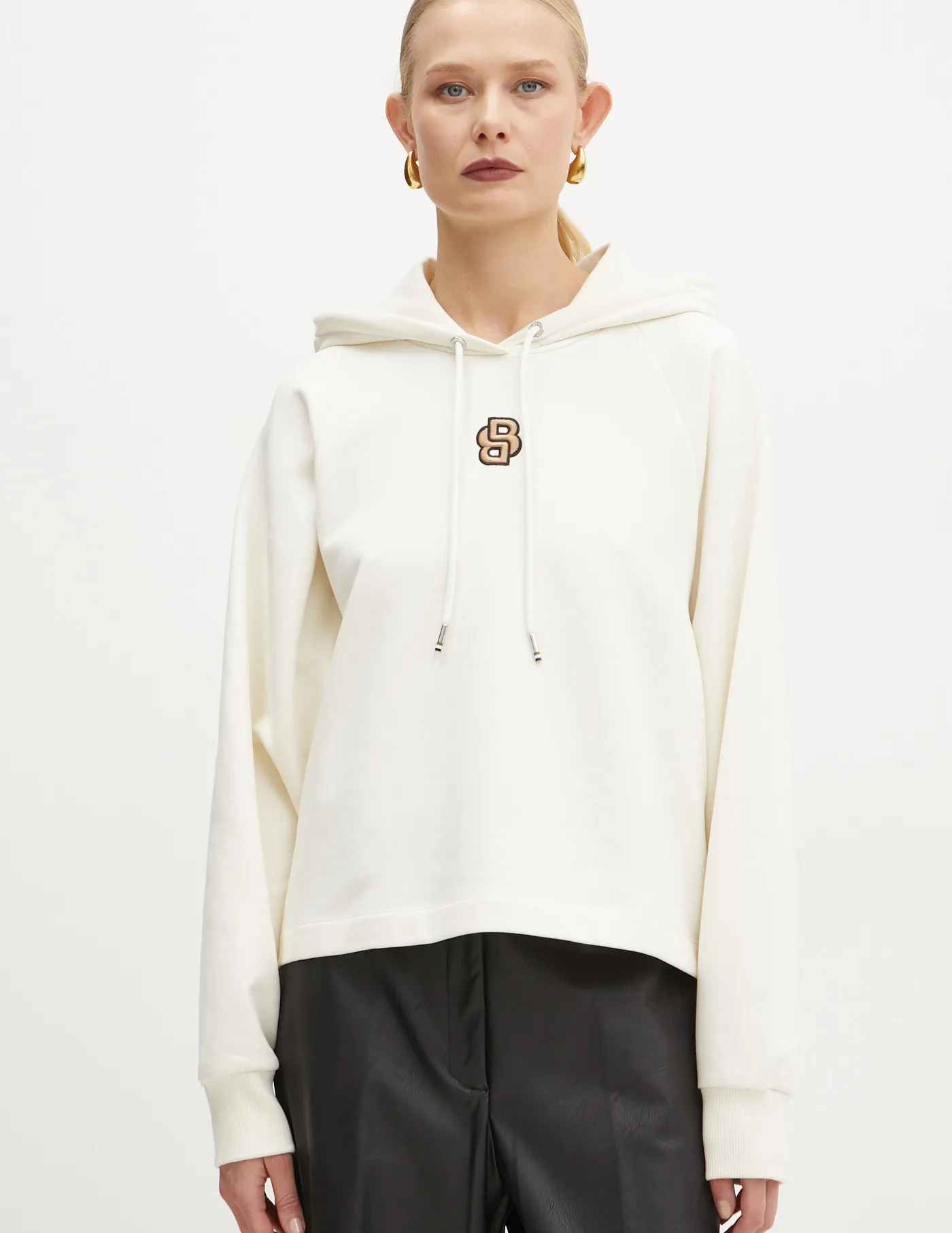 Толстовка BOSS с капюшоном из трикотажа с аппликациями. Модель изготовлена ​​из очень комфортной хлопковой ткани.
