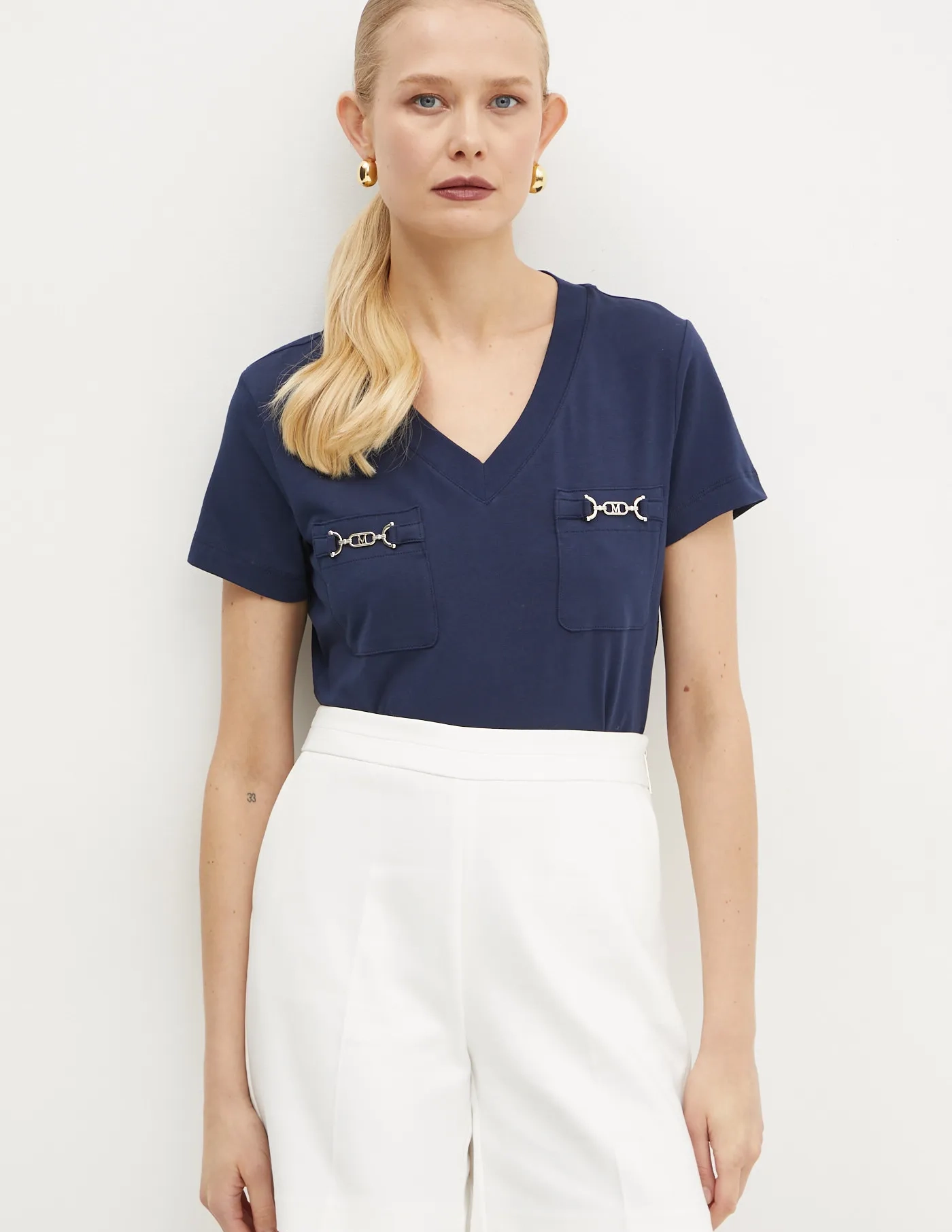 - Декоративный V-образный вырез.