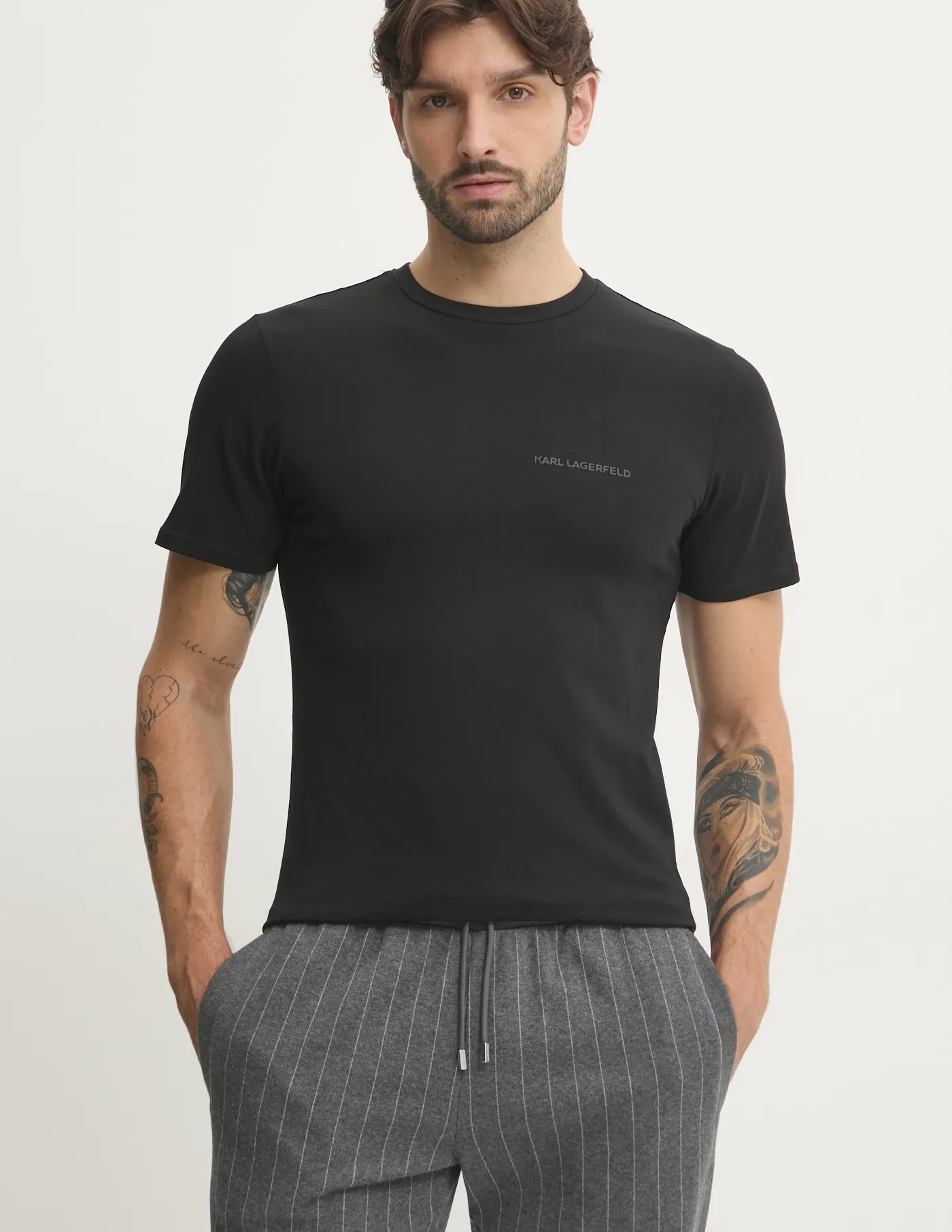 Футболка Karl Lagerfeld из однотонного трикотажа. Модель изготовлена ​​из чрезвычайно комфортной ткани с высоким процентом хлопка.