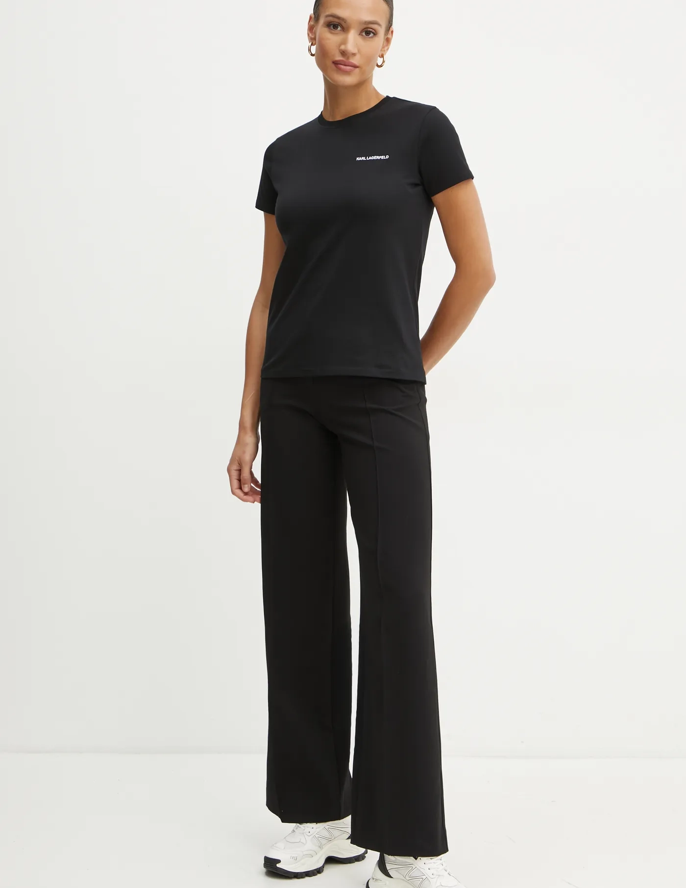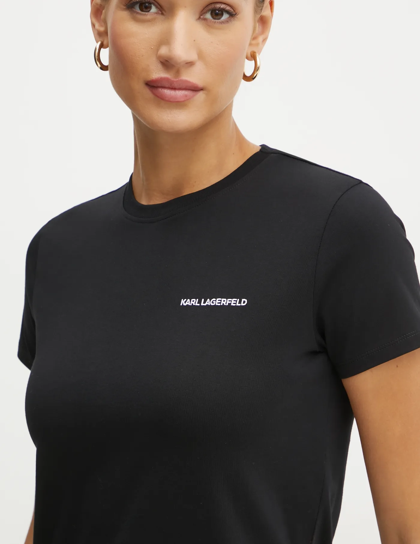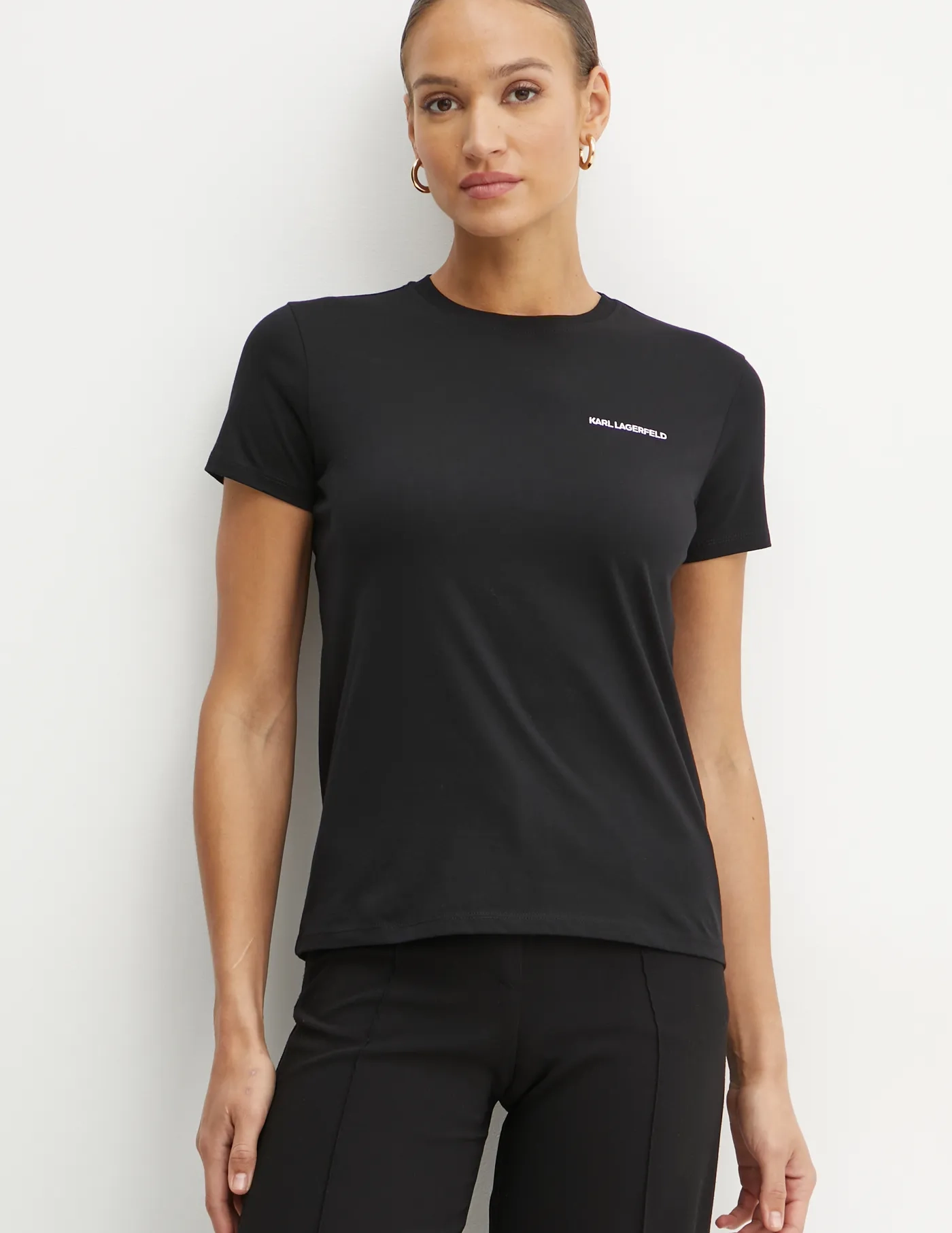 Футболка Karl Lagerfeld из однотонного трикотажа. Модель изготовлена ​​из очень комфортной хлопковой ткани.