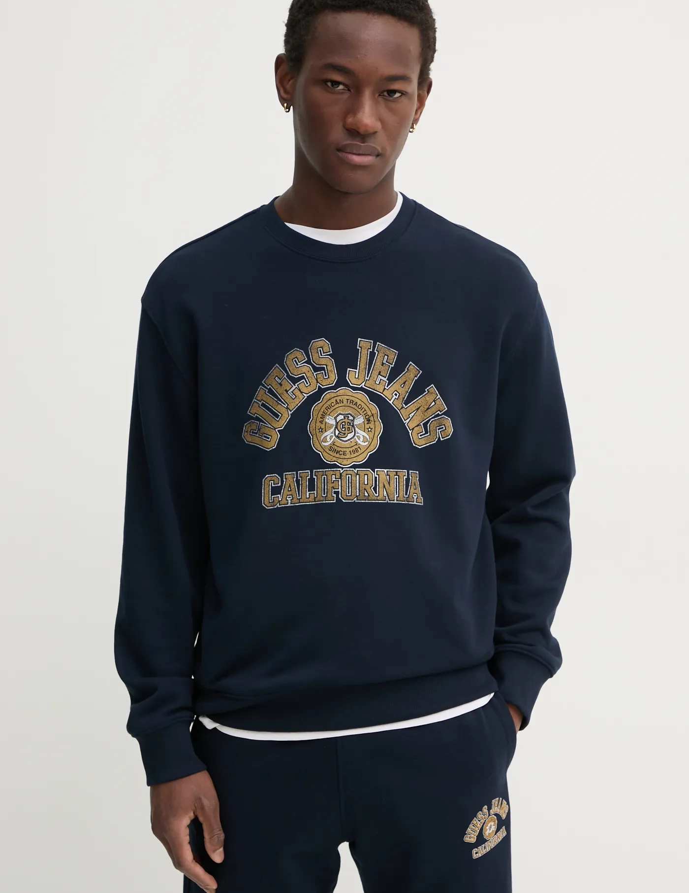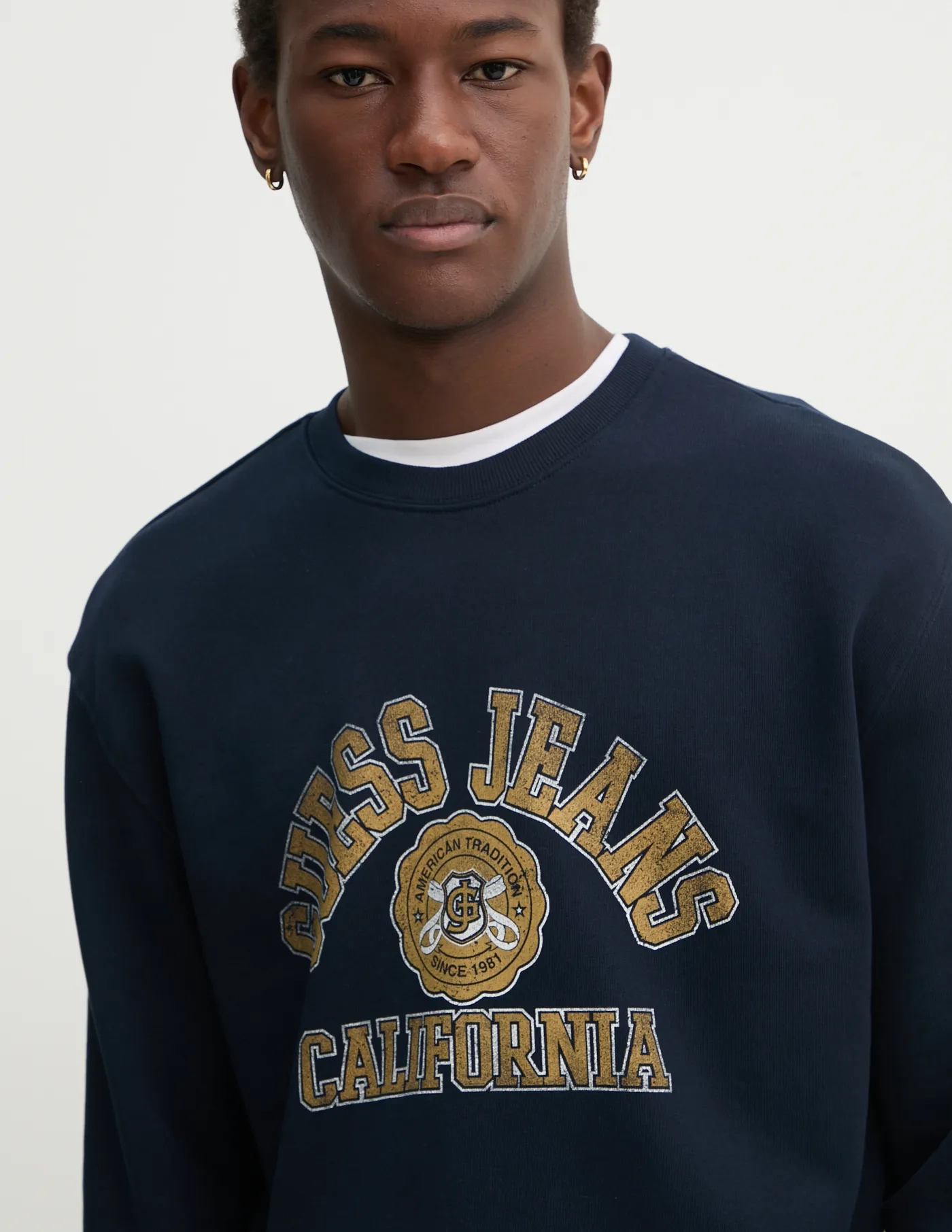 Толстовка Guess Jeans изготовлена ​​из эластичного трикотажа. Модель изготовлена ​​из дышащего хлопкового материала.