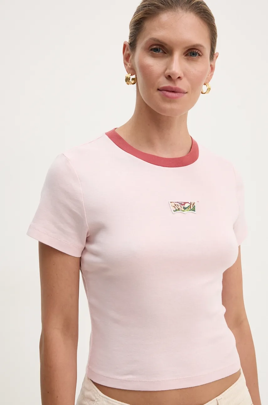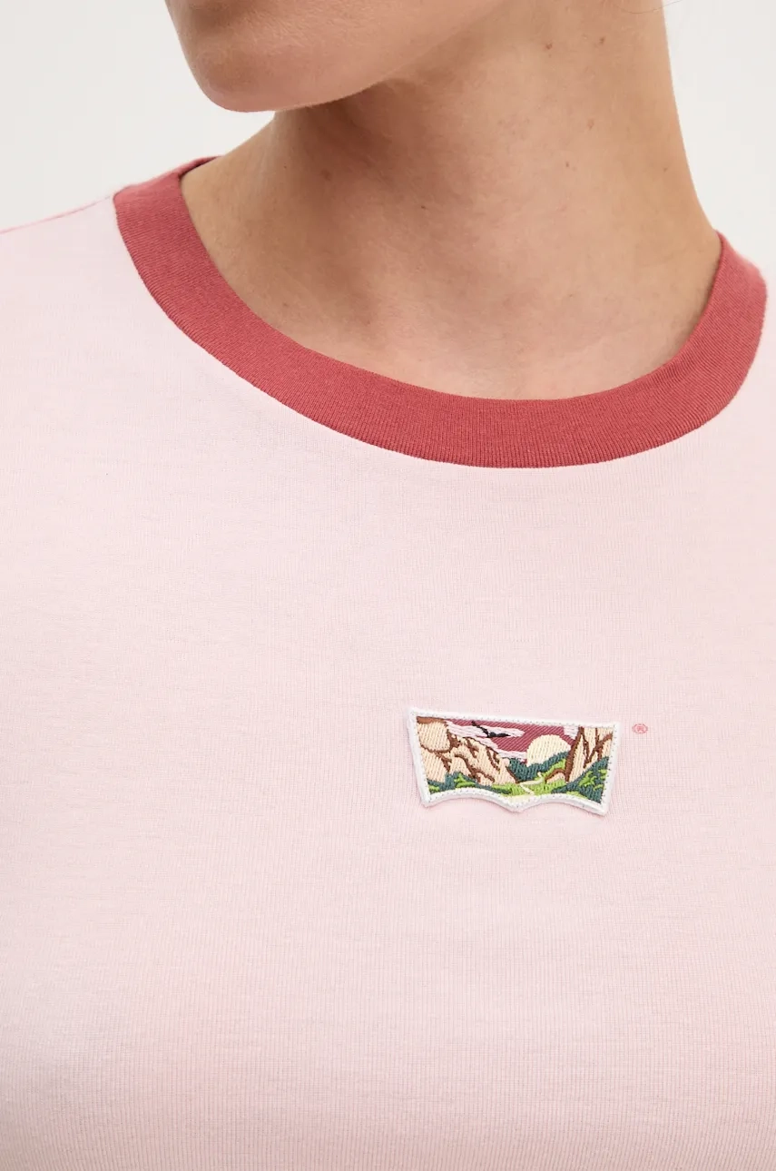 Хлопковая футболка Levi's, розовый
