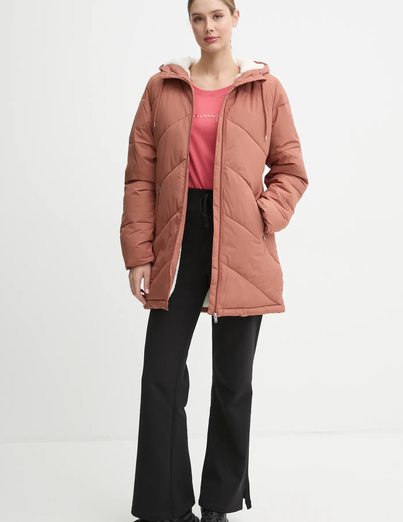 - Регулируемый капюшон с кулиской для лучшей защиты от ветра и дождя.