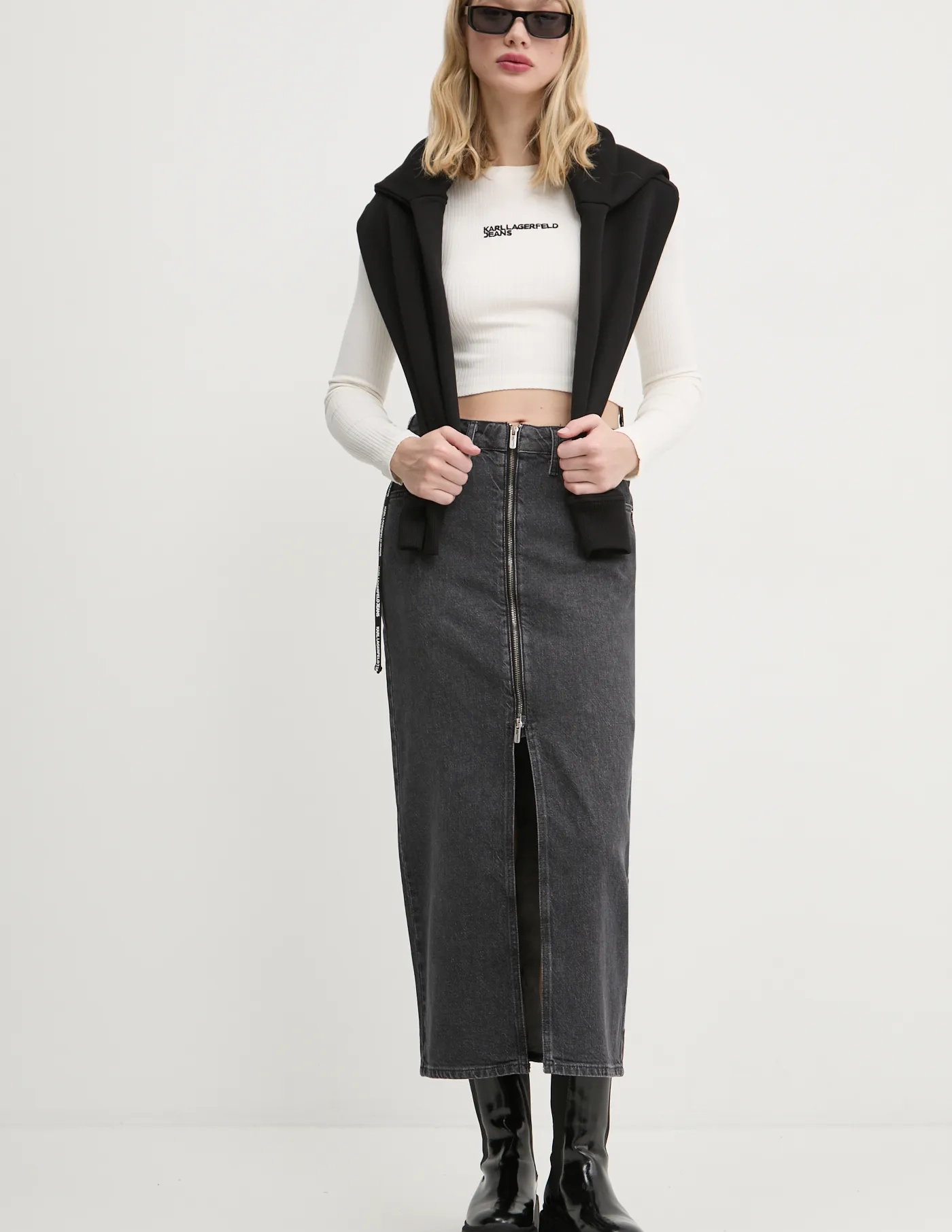Рубашка Karl Lagerfeld Jeans с длинными рукавами из тонкого эластичного трикотажа. Модель изготовлена ​​из легкого и дышащего материала с высоким процентом вискозы.