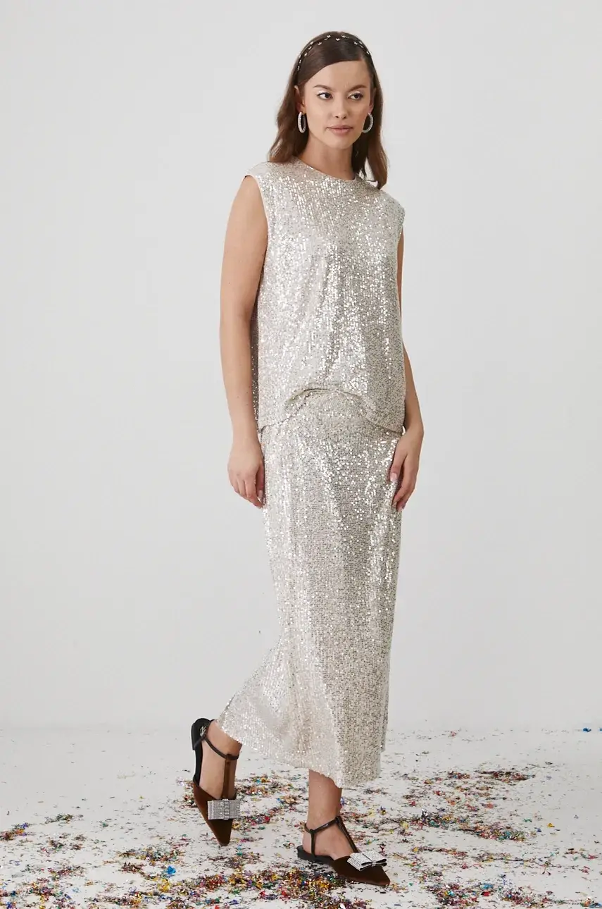 - Модель из ткани с пайетками.