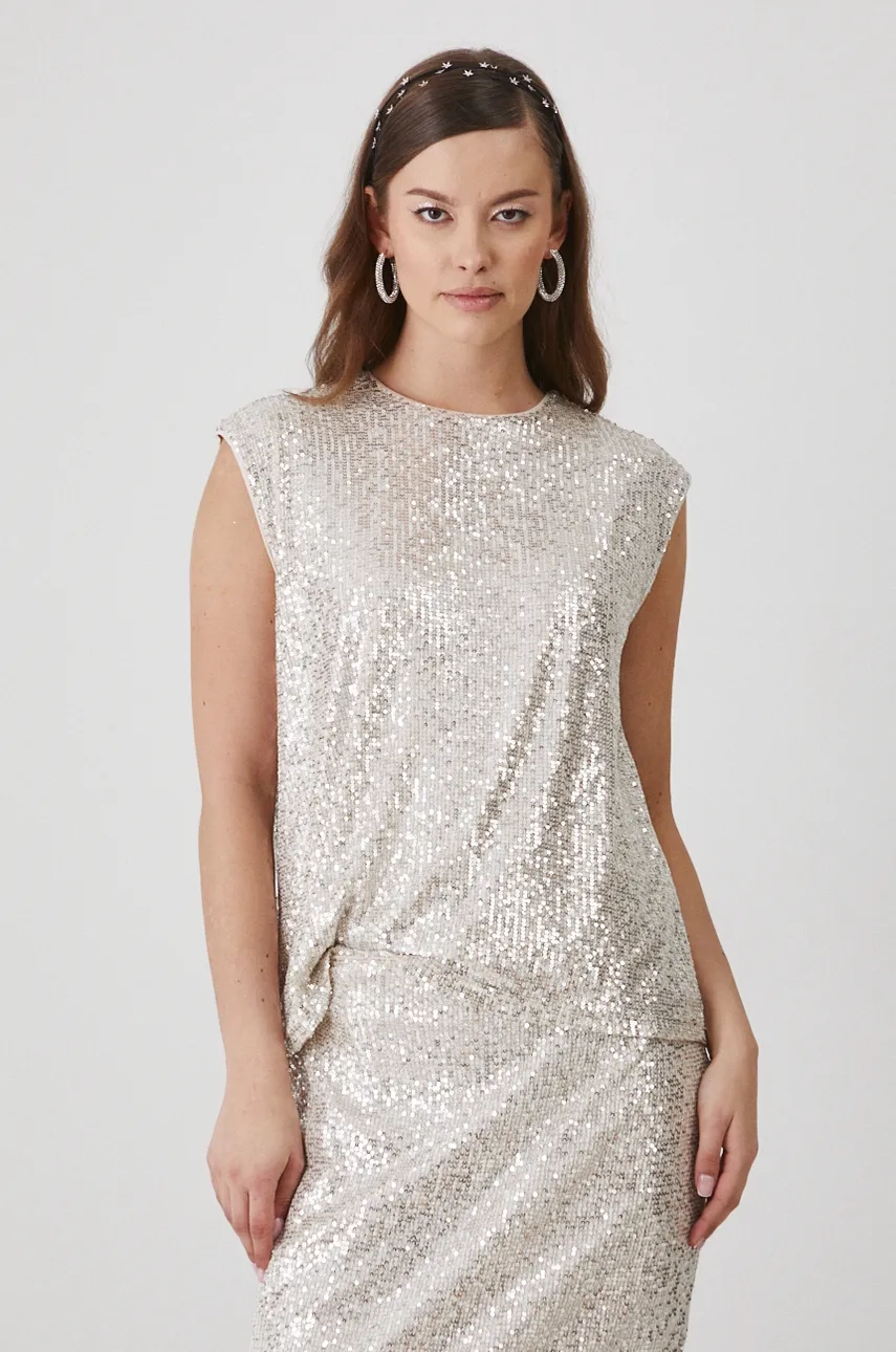Медицинский топ из материала с пайетками.