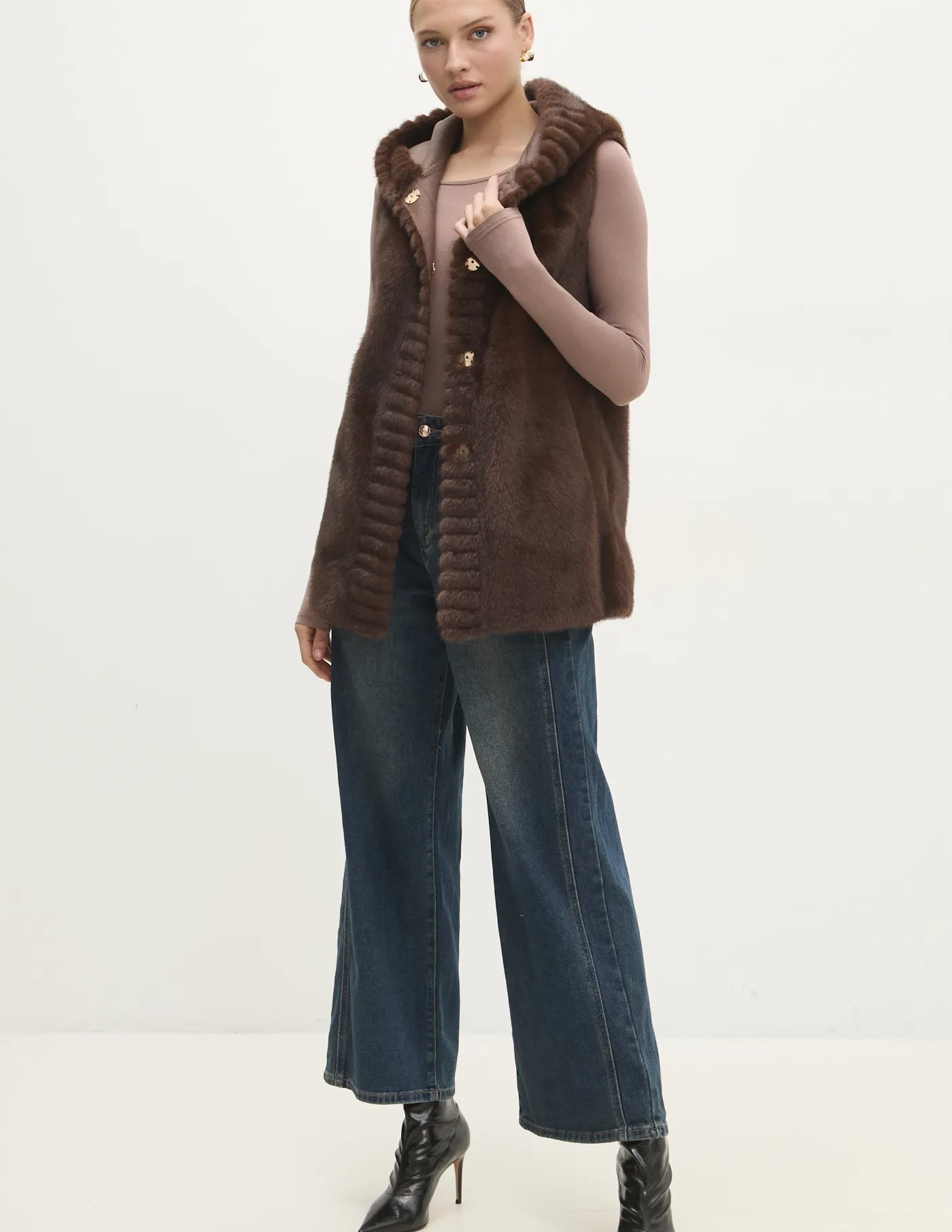 - Модель с завышенной талией, застежкой на пуговицы и молнию.