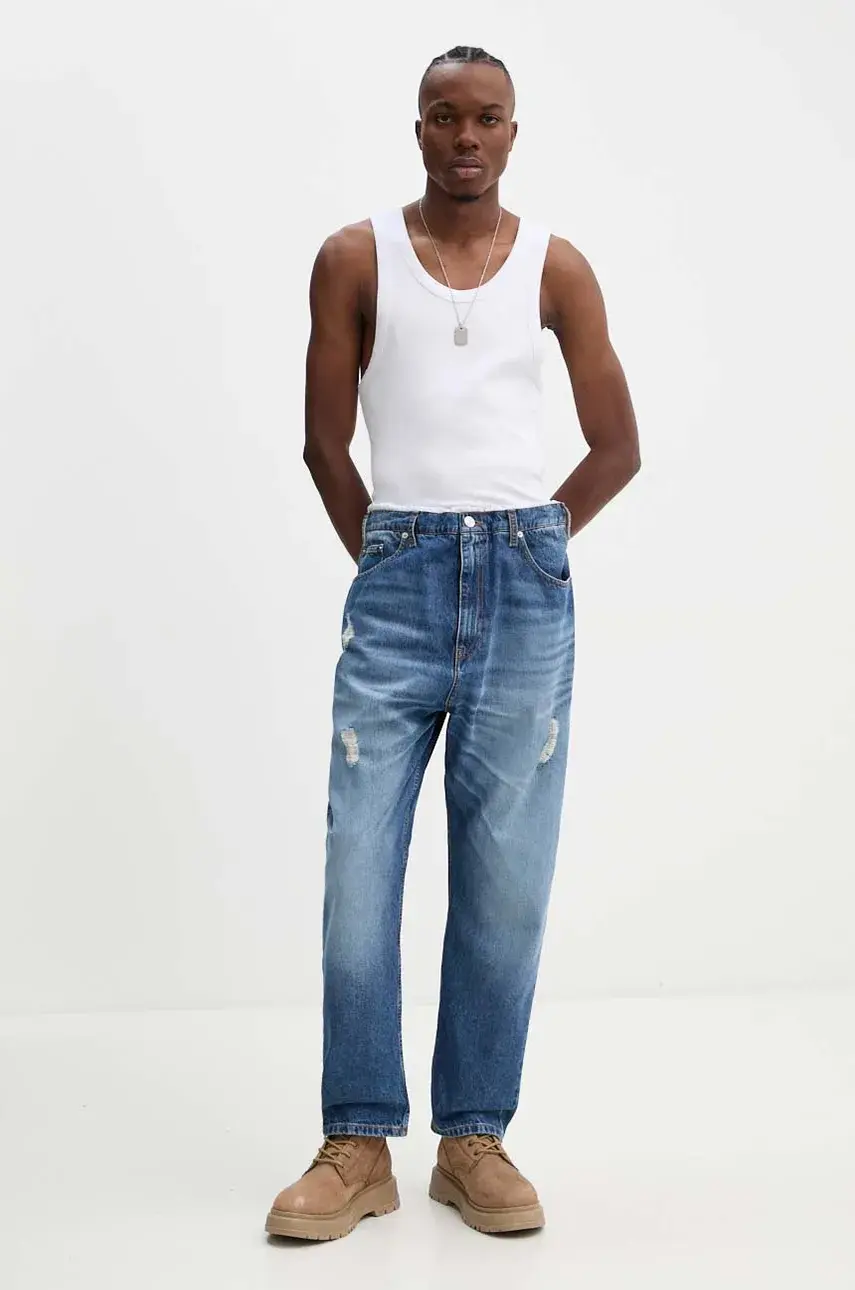 Джинсы свободного кроя BLUEMARBLE с стандартной талией. Модель выполнена из однотонного денима.
