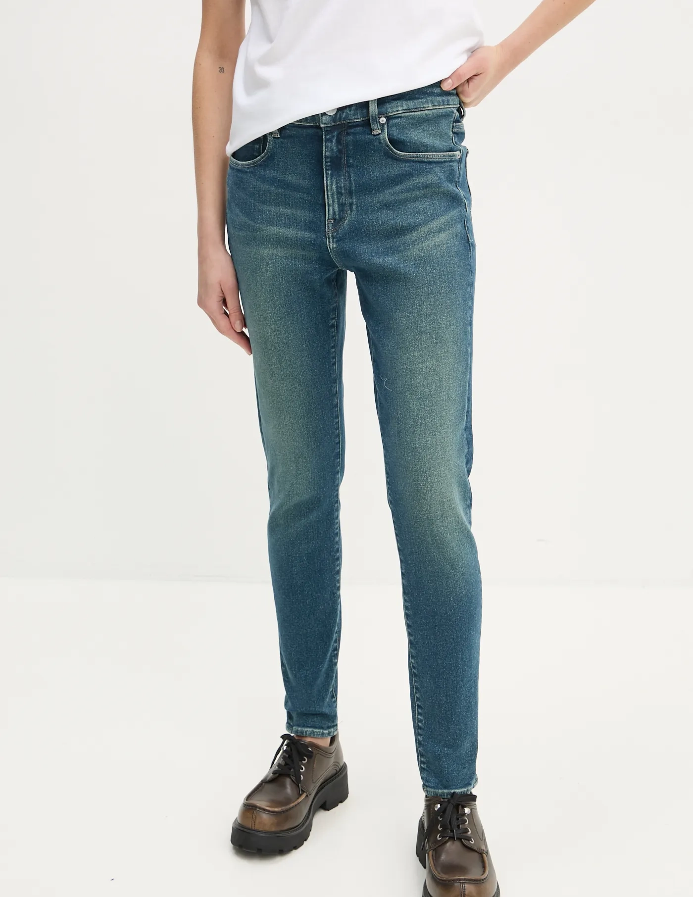 - Джинсы скинни на бедрах.