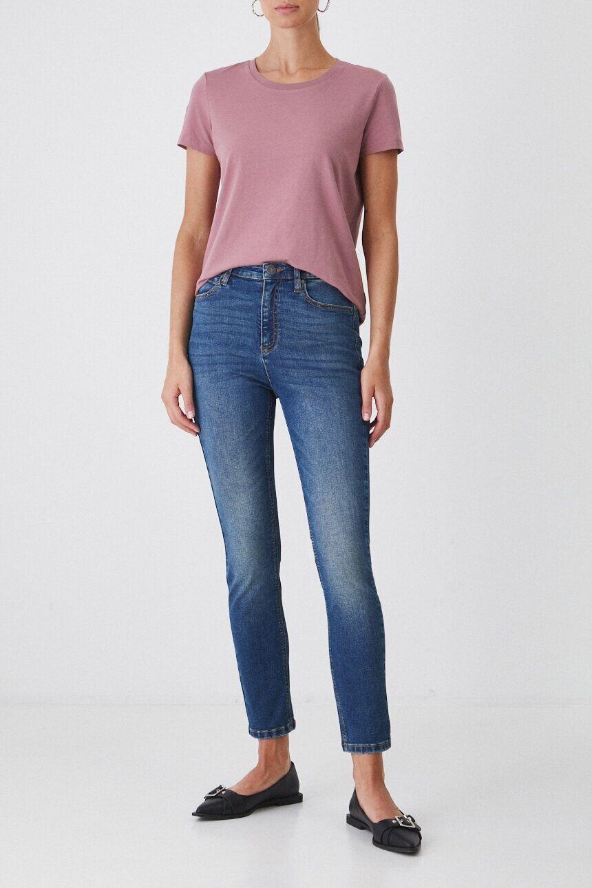 Джинсы медицинского кроя с завышенной талией. Модель из стираного денима.