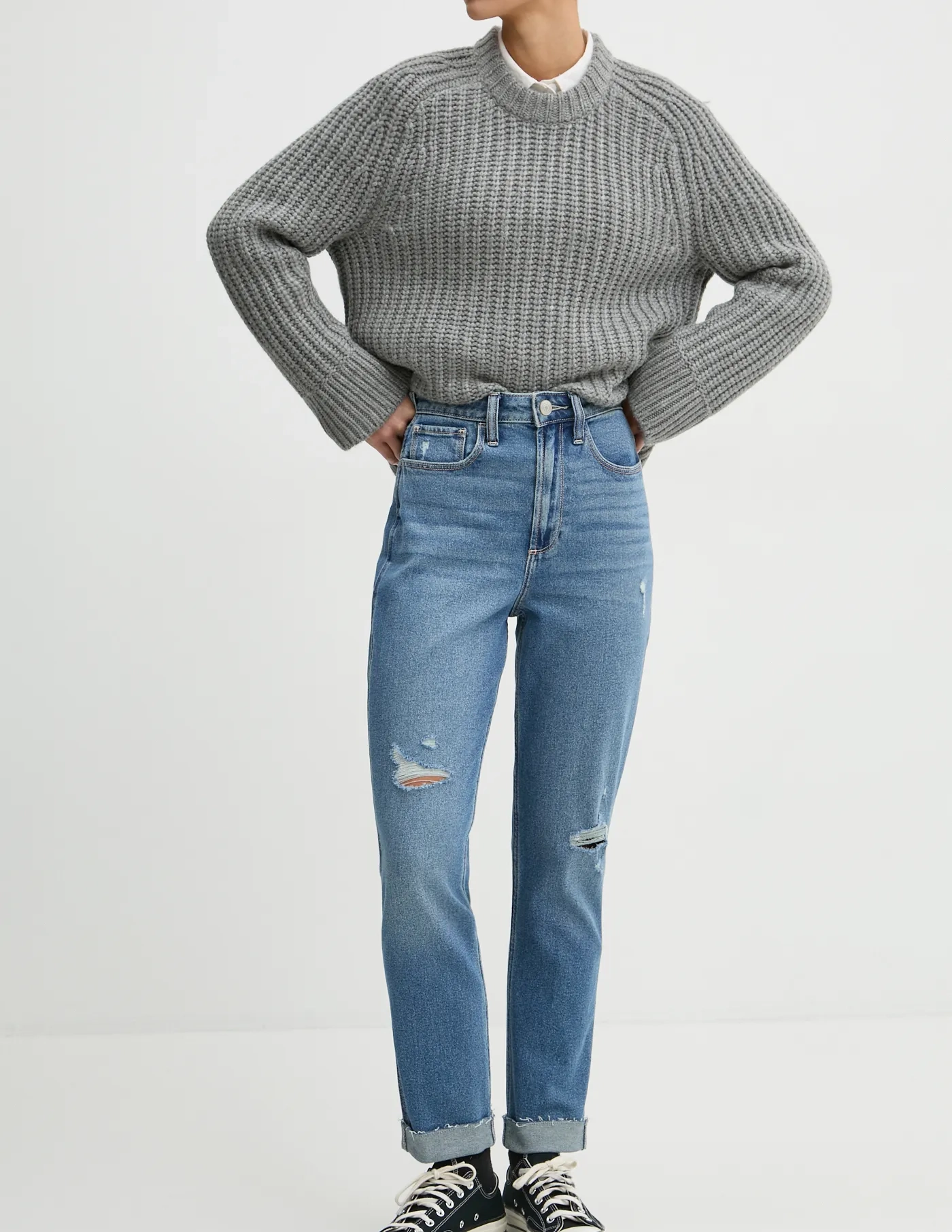 Hollister Co. Джинсы для мам с завышенной талией. Модель из рваного денима.