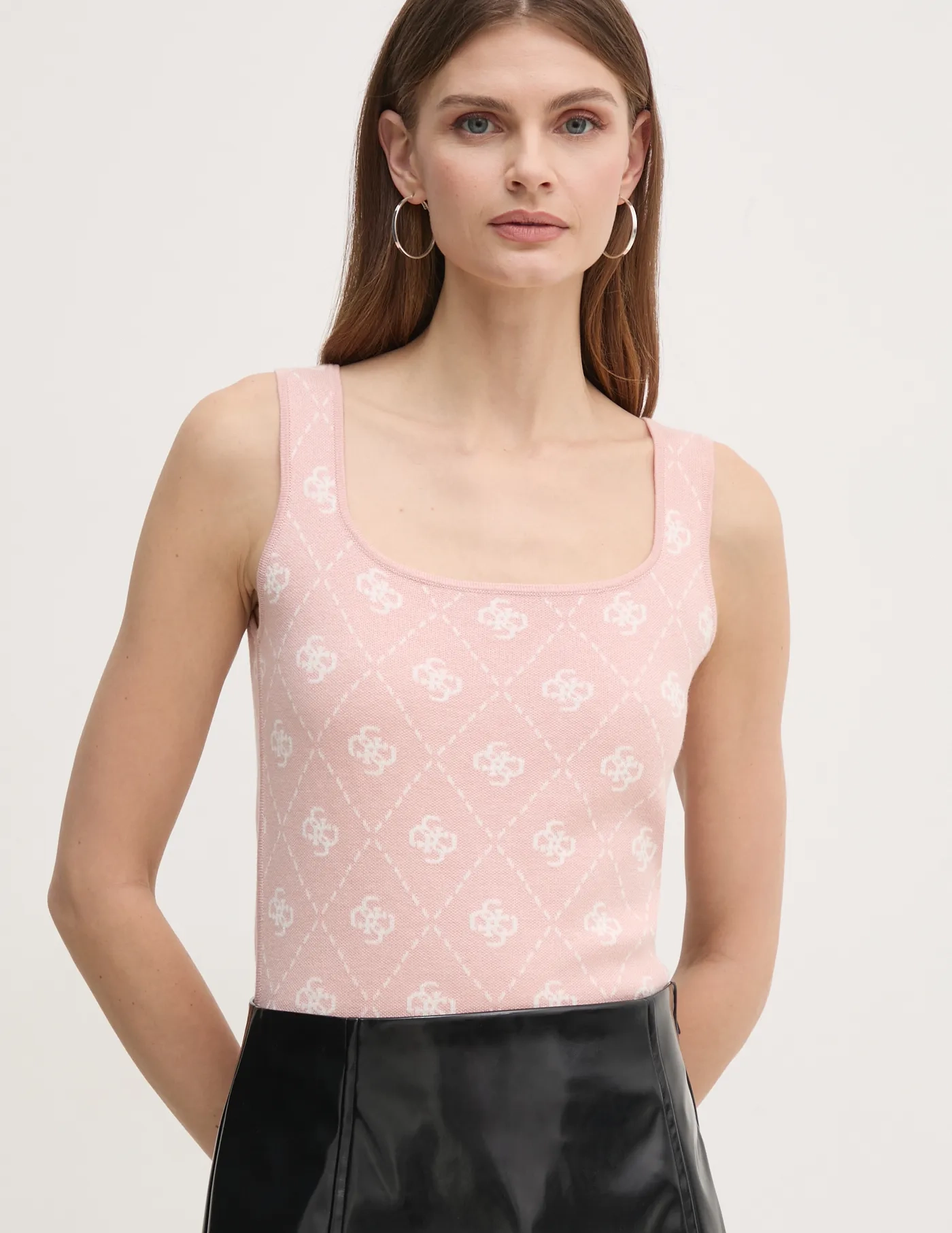 Guess топы. Выполнено из плотного эластичного трикотажа. Продукт содержит переработанные волокнистые материалы.