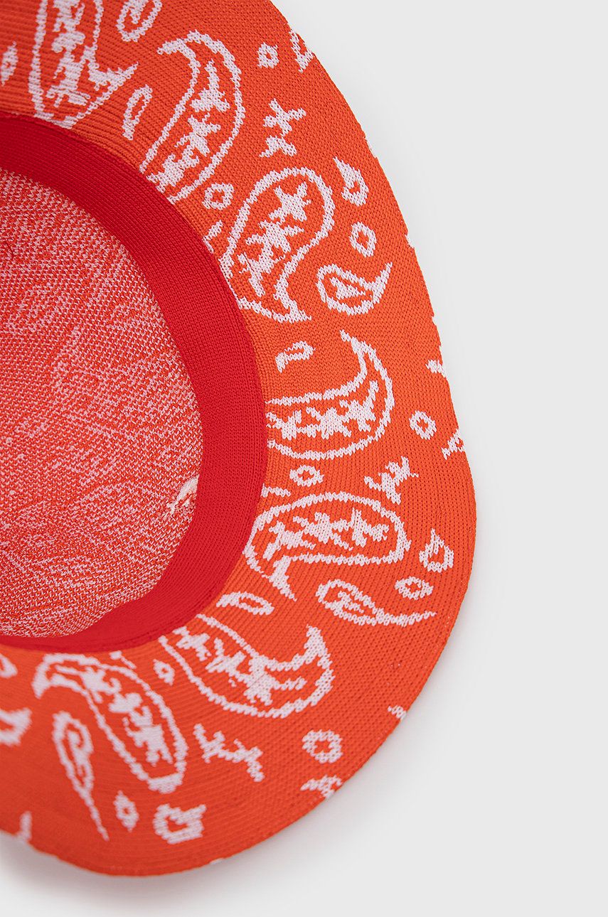 Шапка Кангол с узкой сумкой. Изготовлен из узорчатого материала.