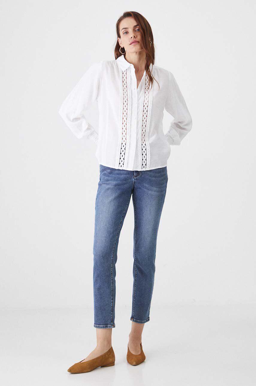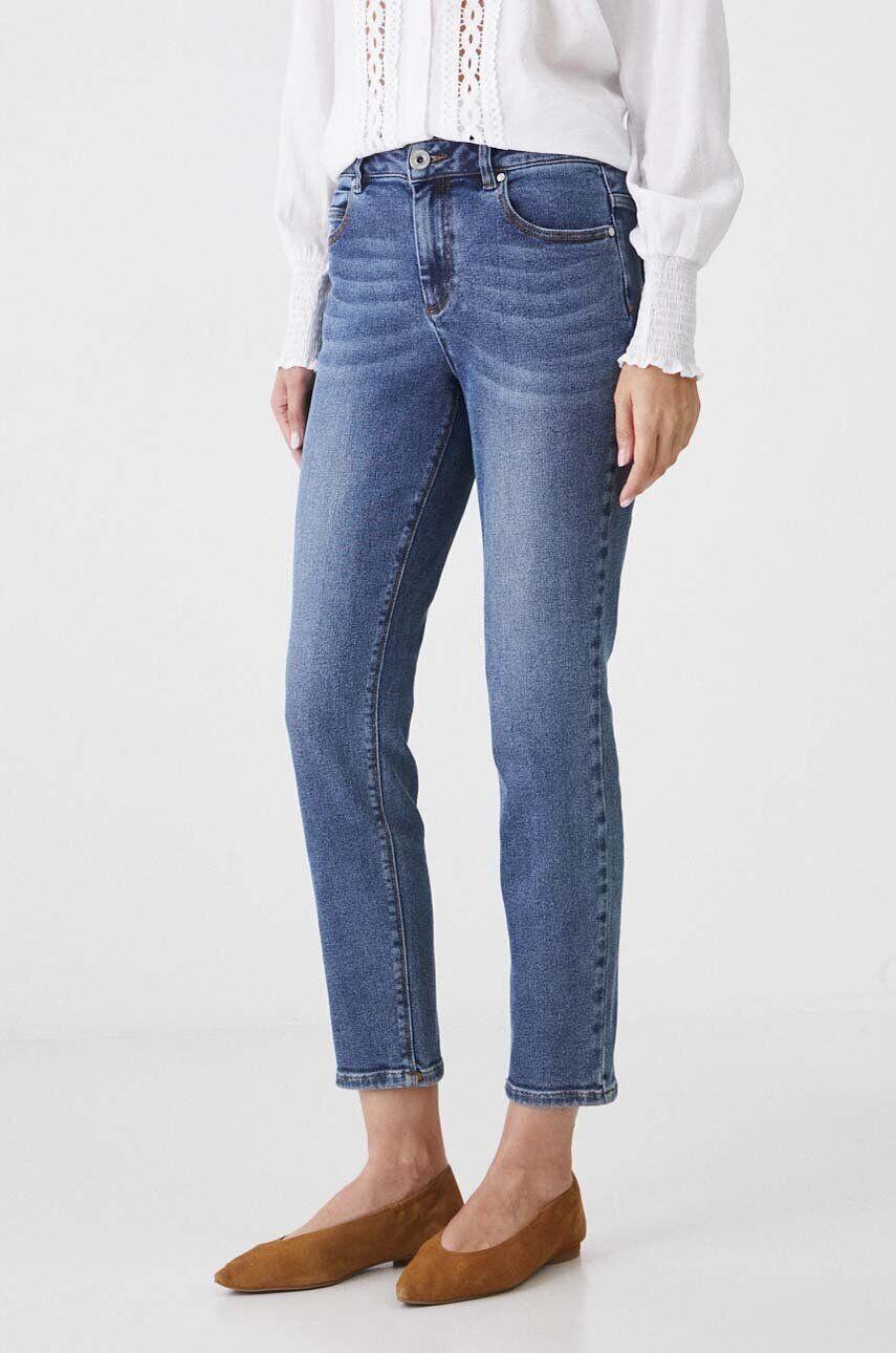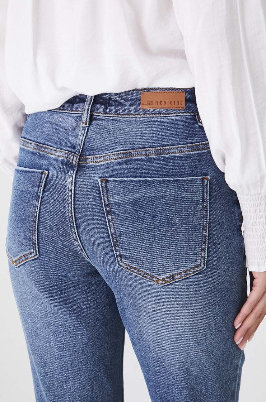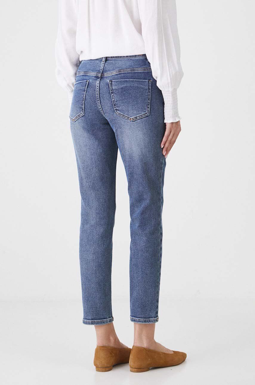 Джинсы медицинского кроя с завышенной талией. Модель из стираного денима.