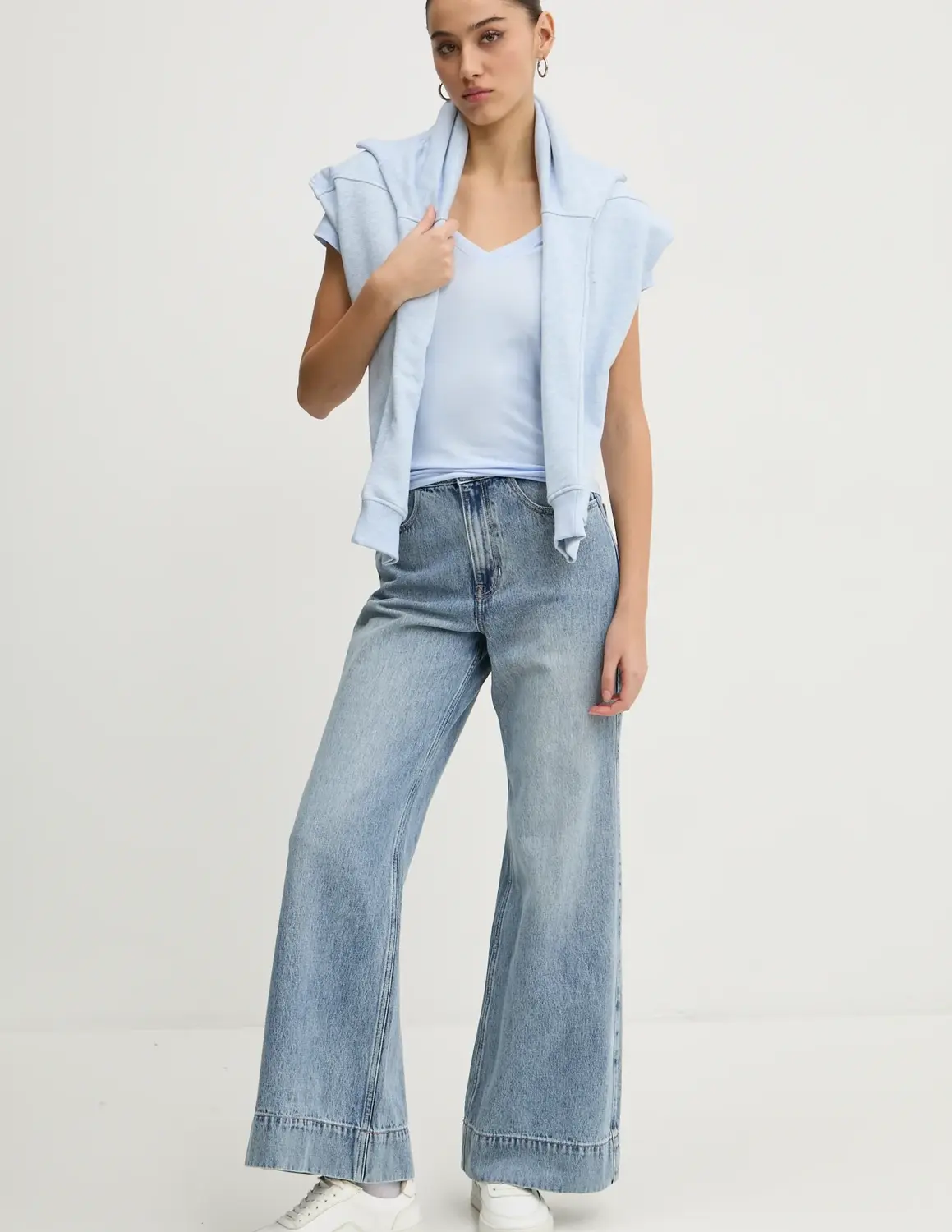 - Широкие джинсы на бедрах.