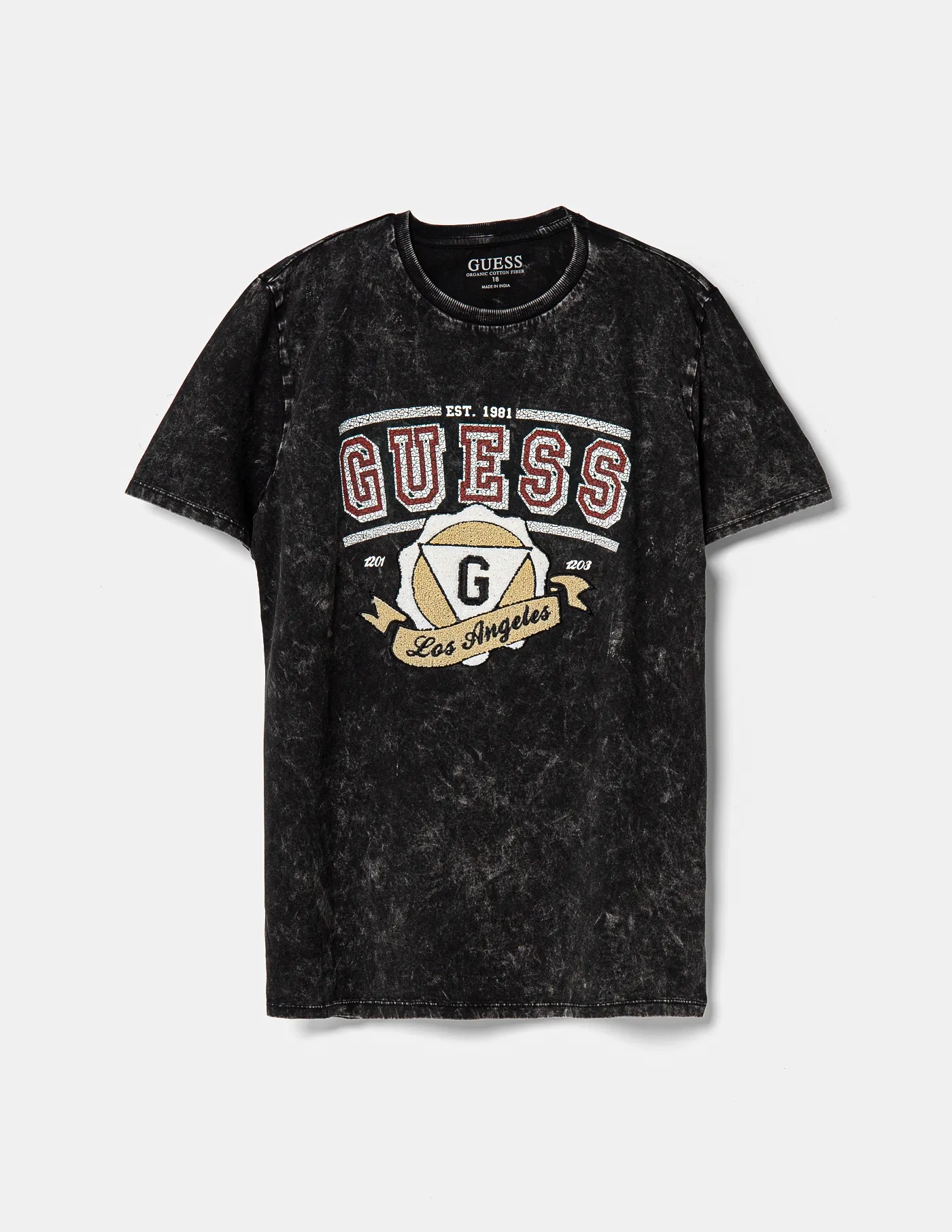 Детская футболка Guess выполнена из узорного трикотажа. Модель изготовлена ​​из очень комфортной хлопковой ткани.