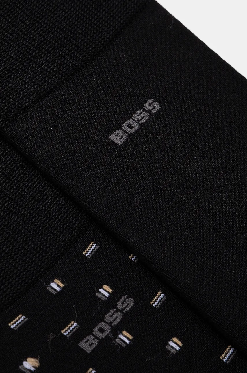 Длинные носки BOSS. Изготовлен из эластичного материала с рисунком. Две пары в комплекте. Чрезвычайно комфортная ткань с высоким содержанием хлопка.