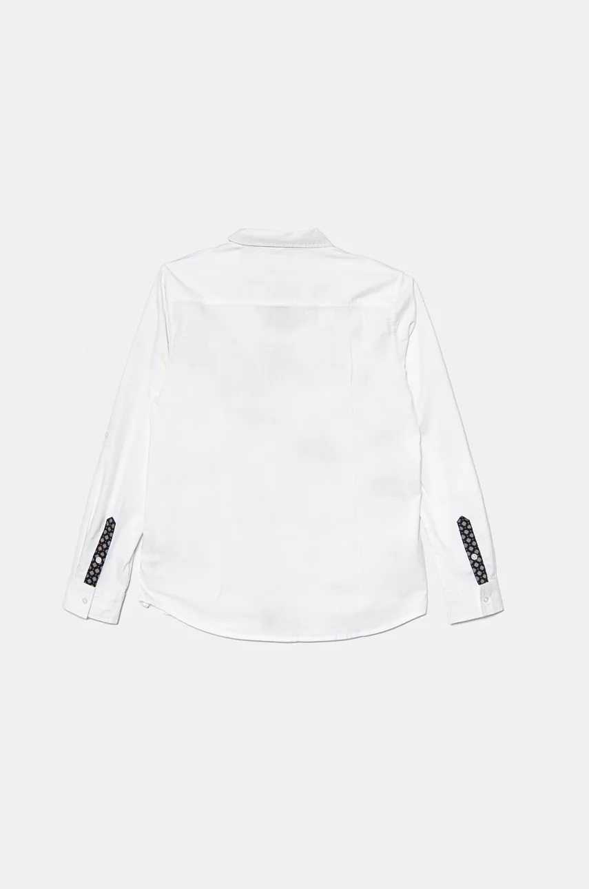 Guess Детская рубашка из однотонной ткани. Модель изготовлена ​​из очень комфортной хлопковой ткани.