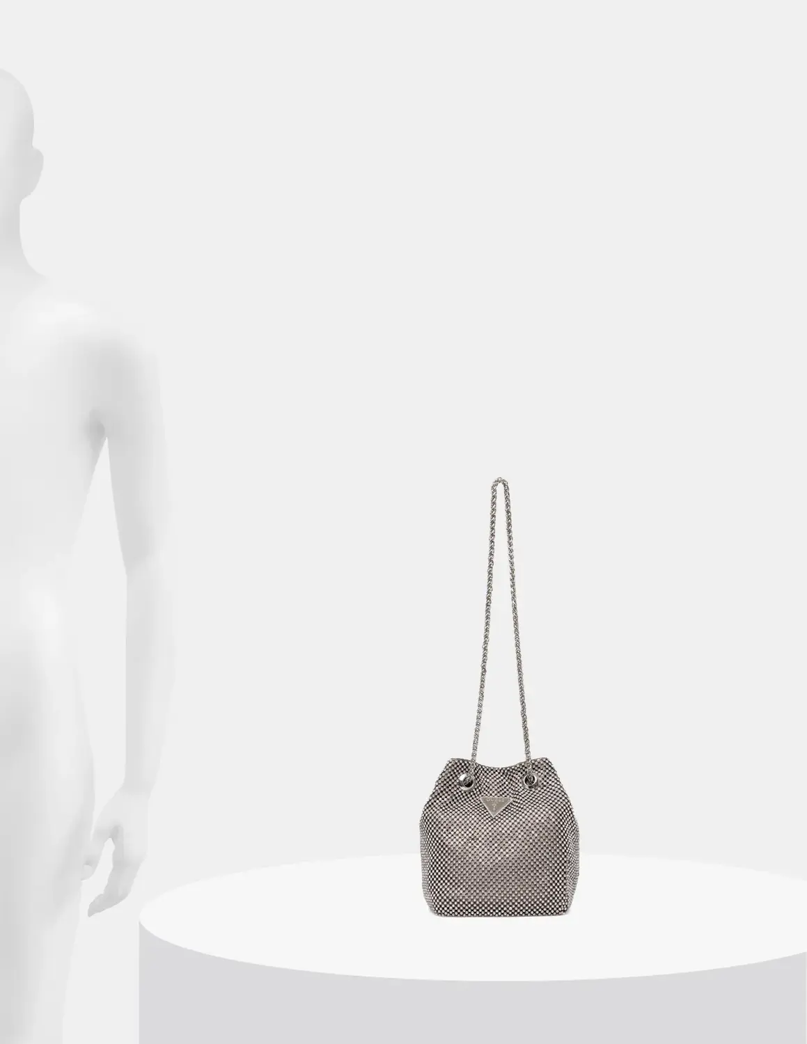 Guess маленькую сумочку. Модель с застежкой из текстильного материала и стразами.
