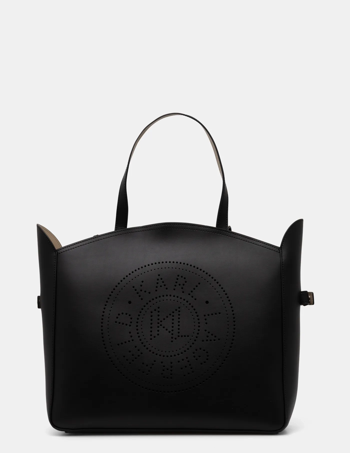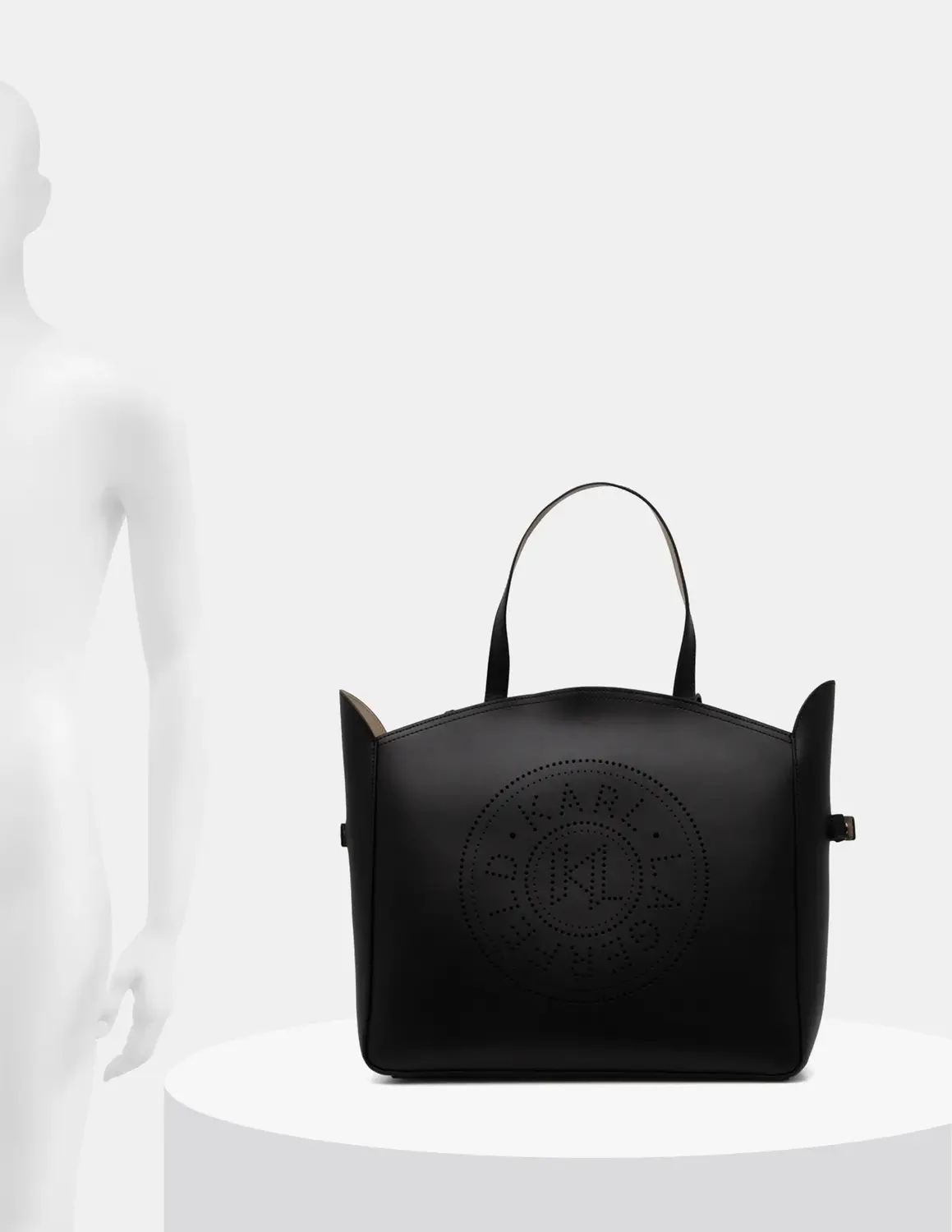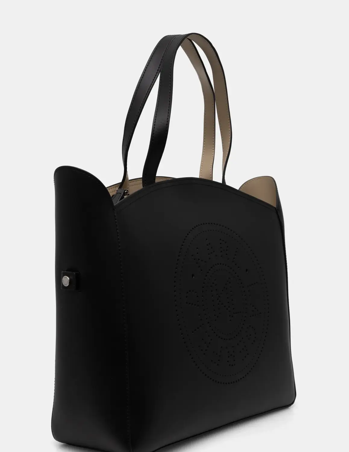 Большая сумка Karl Lagerfeld с застежкой. Изготовлен из комбинации натуральной кожи и текстиля.