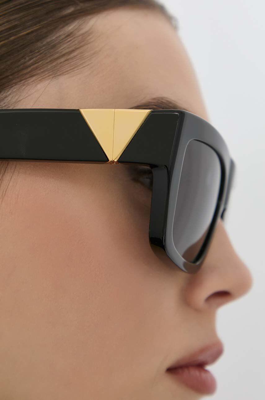Солнцезащитные очки Bottega Veneta. Модель с однотонными линзами и пластиковой и металлической оправой. С фильтром UV 400.