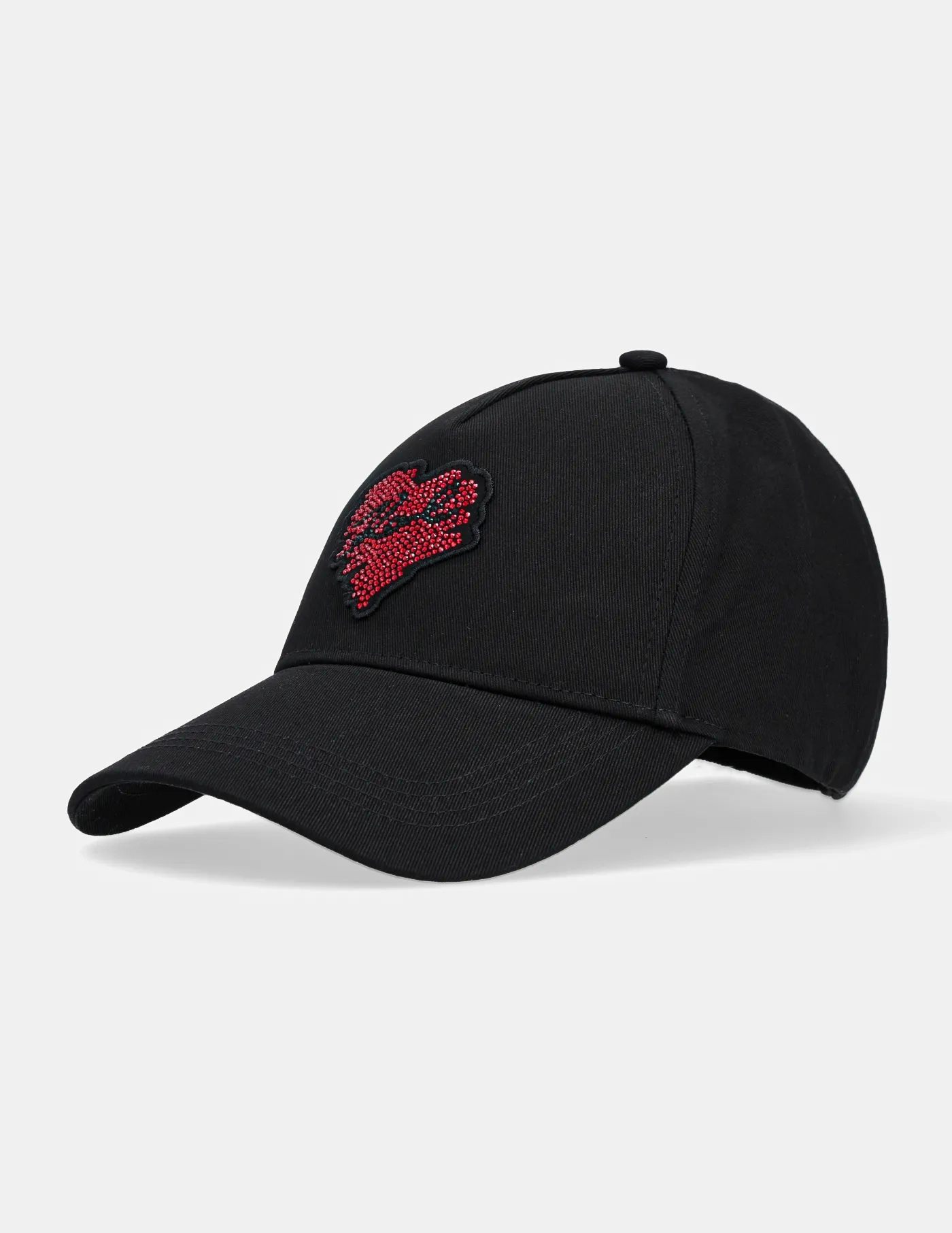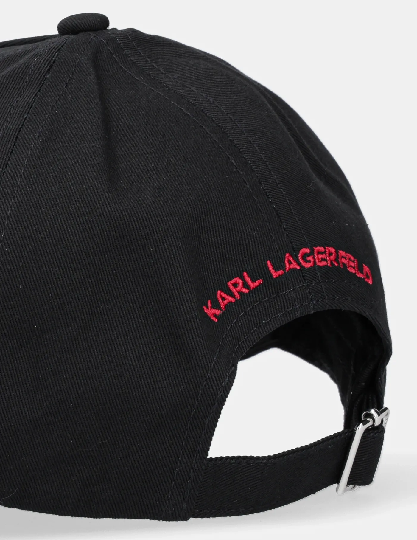 Бейсболка из коллекции Карла Лагерфельда. Изготовлен из ткани с аппликацией. Комфортная хлопчатобумажная ткань.