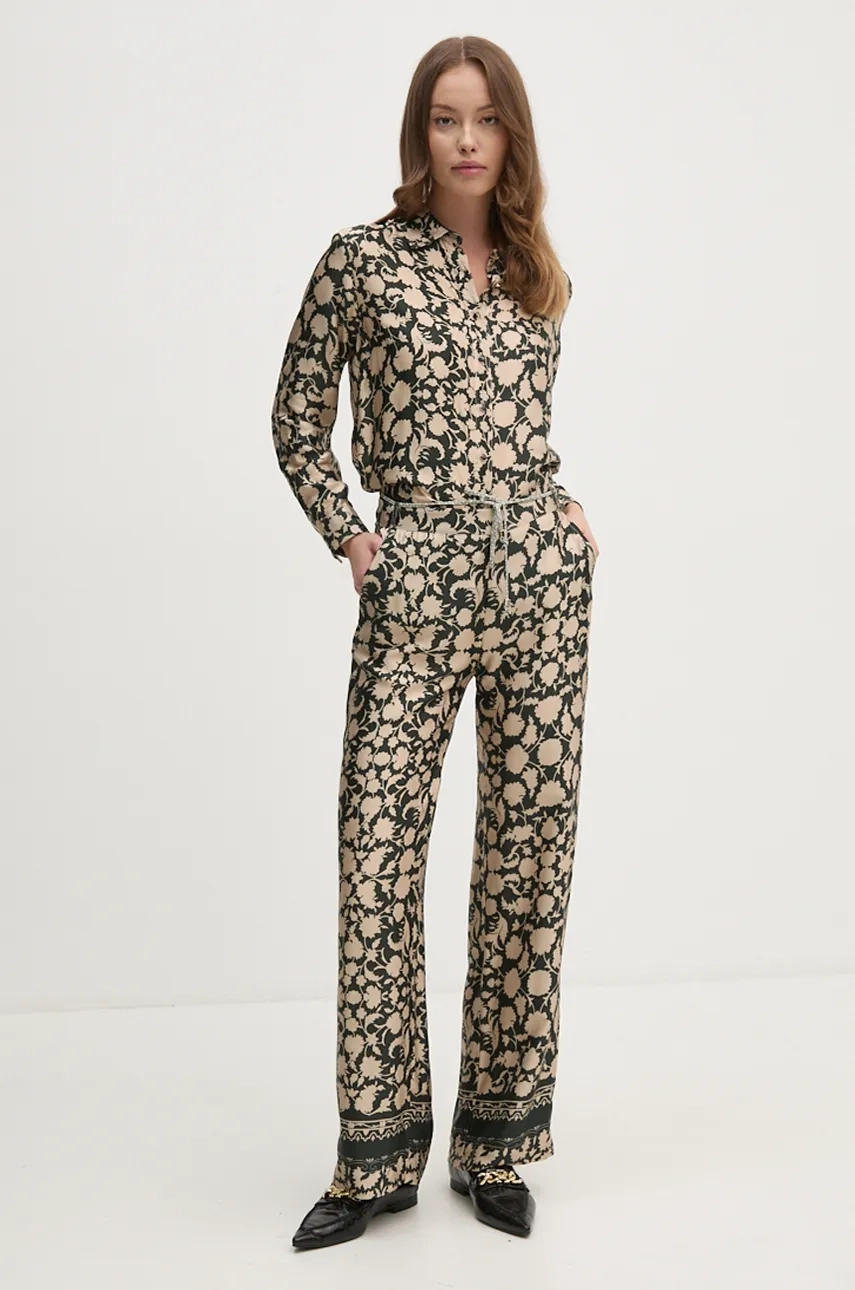 Брюки La Petite Française. Изготовлен из узорчатой ​​ткани. Модель изготовлена ​​из льняной ткани, что гарантирует высокую устойчивость.