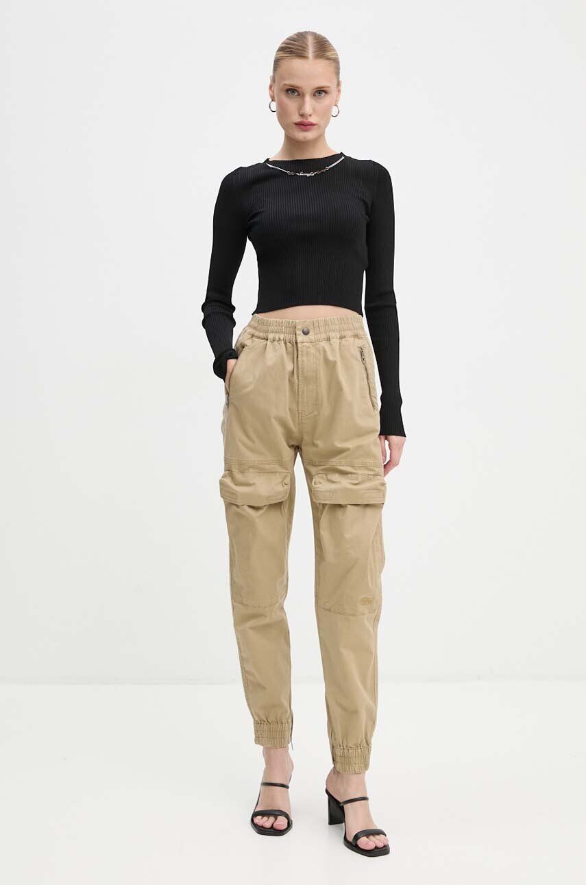 Дизельные брюки. Изготовлен из однотонной ткани. Модель изготовлена ​​из чрезвычайно комфортной и дышащей ткани с высоким процентом хлопка.