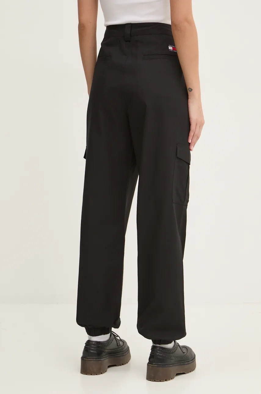 Брюки Томми Джинс. Изготовлен из однотонной ткани. Модель изготовлена ​​из чрезвычайно комфортного материала с высоким содержанием лиоцелла.
