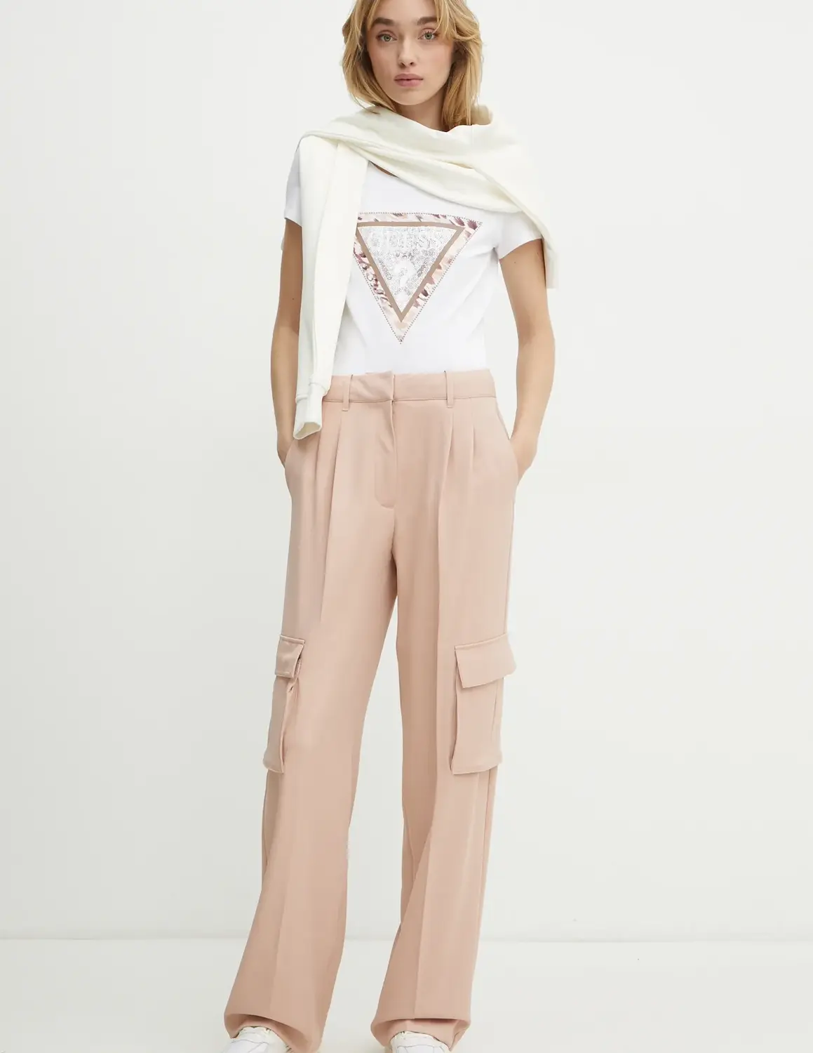 Guess штаны. Изготовлен из однотонной ткани. Содержание полиэстера делает материал более устойчивым к морщинам.