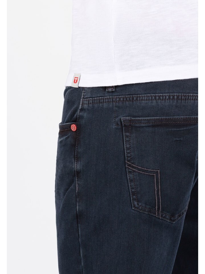 ---- Узкие мужские джинсы EduardoTZ TIMEZONE темный деним стрейч, пять карманов, черный, синий, стирка, удобный ----/ Товар соответствует размеру. / Материал: хлопок 70 %, эластан 6 %, полиэстер 24 % / Посадка: обычная / Застежка: молния 8050 / Рекомендации по уходу: машинная стирка при 30°C