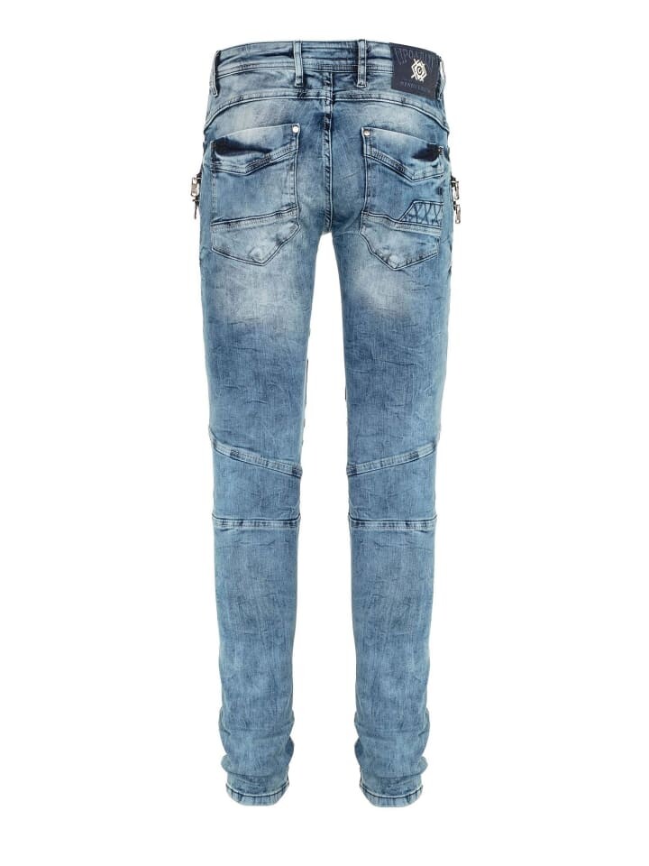В этих джинсах Cipo & Baxx представляет захватывающий дизайн с байкерскими аппликациями! Декоративные швы и детали молний сочетаются с облегающей джинсовой тканью. Джинсы узкого кроя выделяются своим цветом и стиркой и выглядят особенно спортивно. Эластичная хлопчатобумажная ткань адаптируется к каждому вашему движению в течение дня.