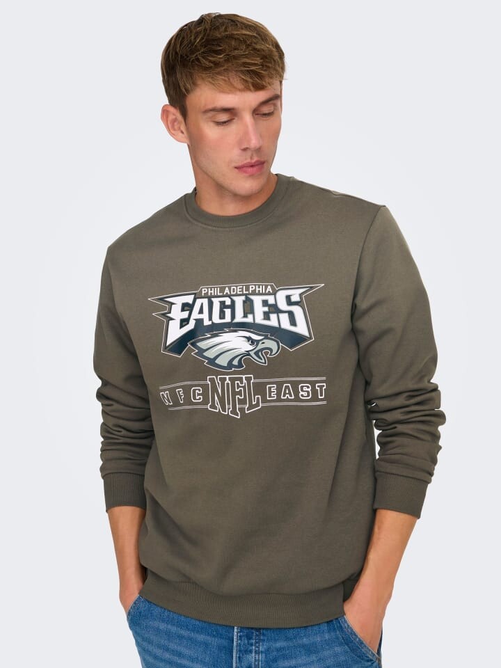 Толстовка Only&Sons Rundhals Sweatshirt Eagles / Raiders NFL Weiches Langarm Pullover, коричневый 4 889₽