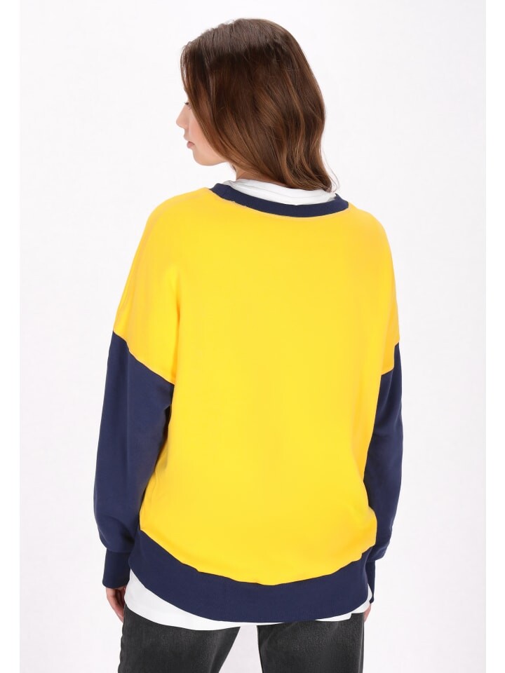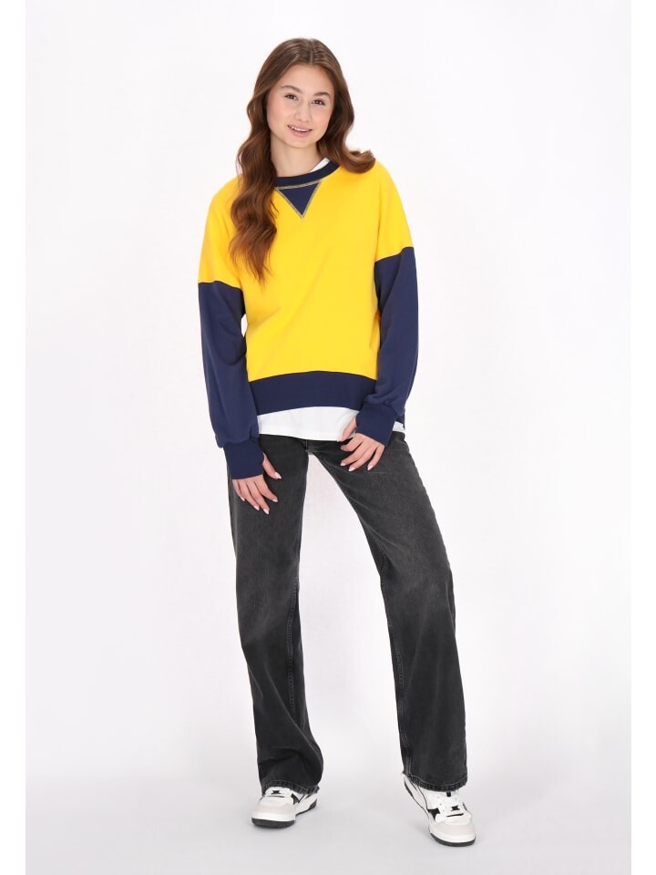 Откройте для себя эту модную толстовку свободного кроя с широким круглым вырезом, обеспечивающим максимальный комфорт. Слегка приспущенные рукава с заниженными плечами имеют удобные отверстия для больших пальцев, повышающие функциональность. Эта модель с ребристым краем и яркими цветными блоками идеально подходит для повседневной моды, что делает ее идеальным выбором для школы или повседневных прогулок. Является частью коллекции Comfortable.