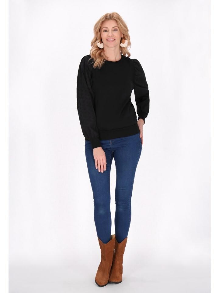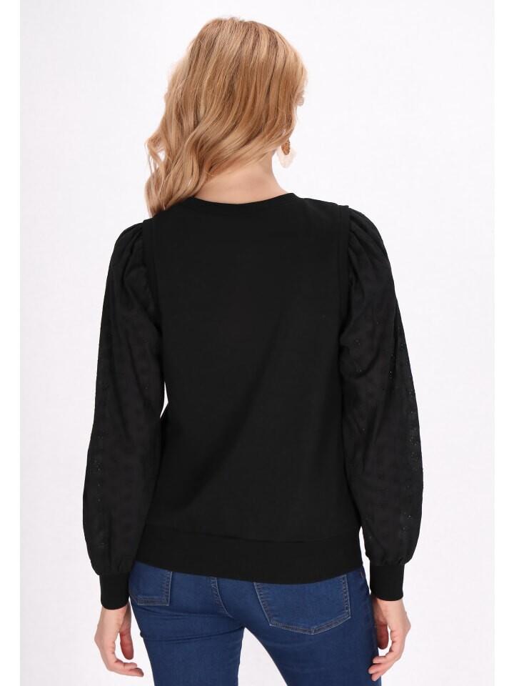 Откройте для себя эту стильную блузку, которая сочетает в себе классический крой и шикарный круглый вырез. Длинные рукава-фонарики красиво украшены тканой цветочной вышивкой, придающей изделию элегантность. Эта блузка из мягкой трикотажной ткани идеально подходит для повседневных прогулок. Он обогащает вашу повседневную модную коллекцию своим неповторимым шармом и универсальностью. Эта блузка входит в коллекцию Everyday Fashion.