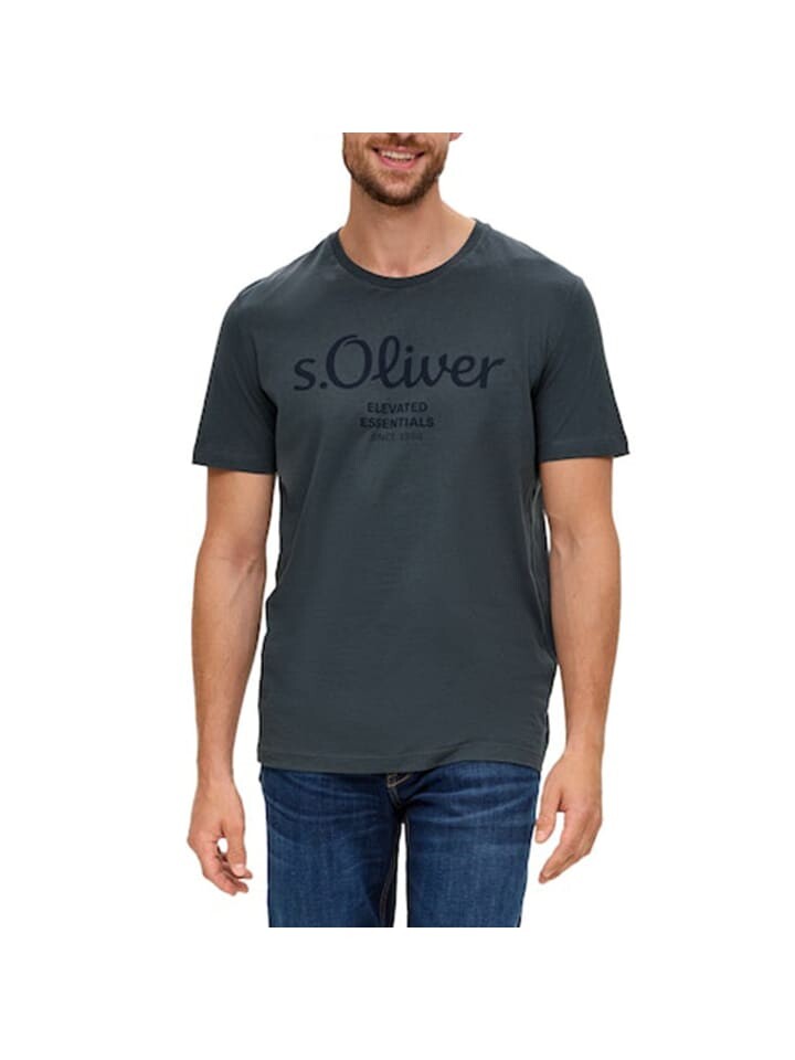 Мужская футболка s.Oliver с принтом логотипа. Рубашка из чистого хлопка стандартного кроя с круглым вырезом. Идеальная повседневная базовая вещь.